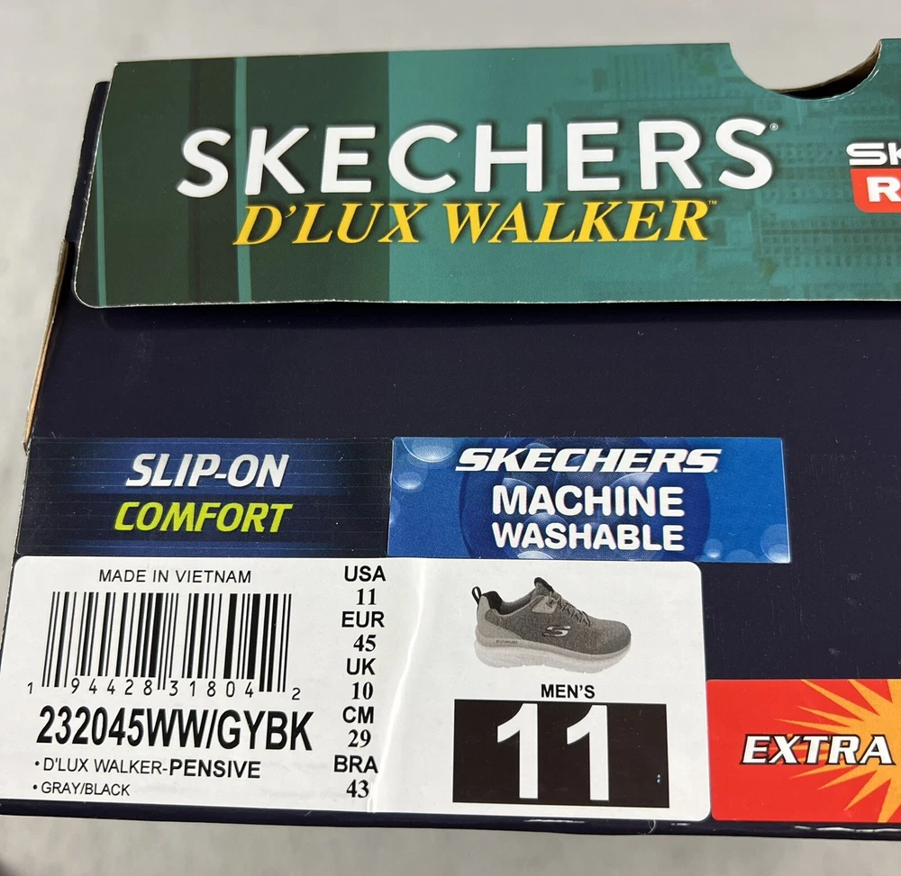 SKECHERS Men's D'Lux Walker Pensive Grey/Black Slip-On Sneakers X-WIDE Sz 11 NIB