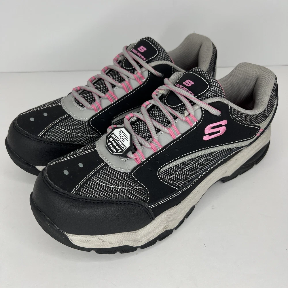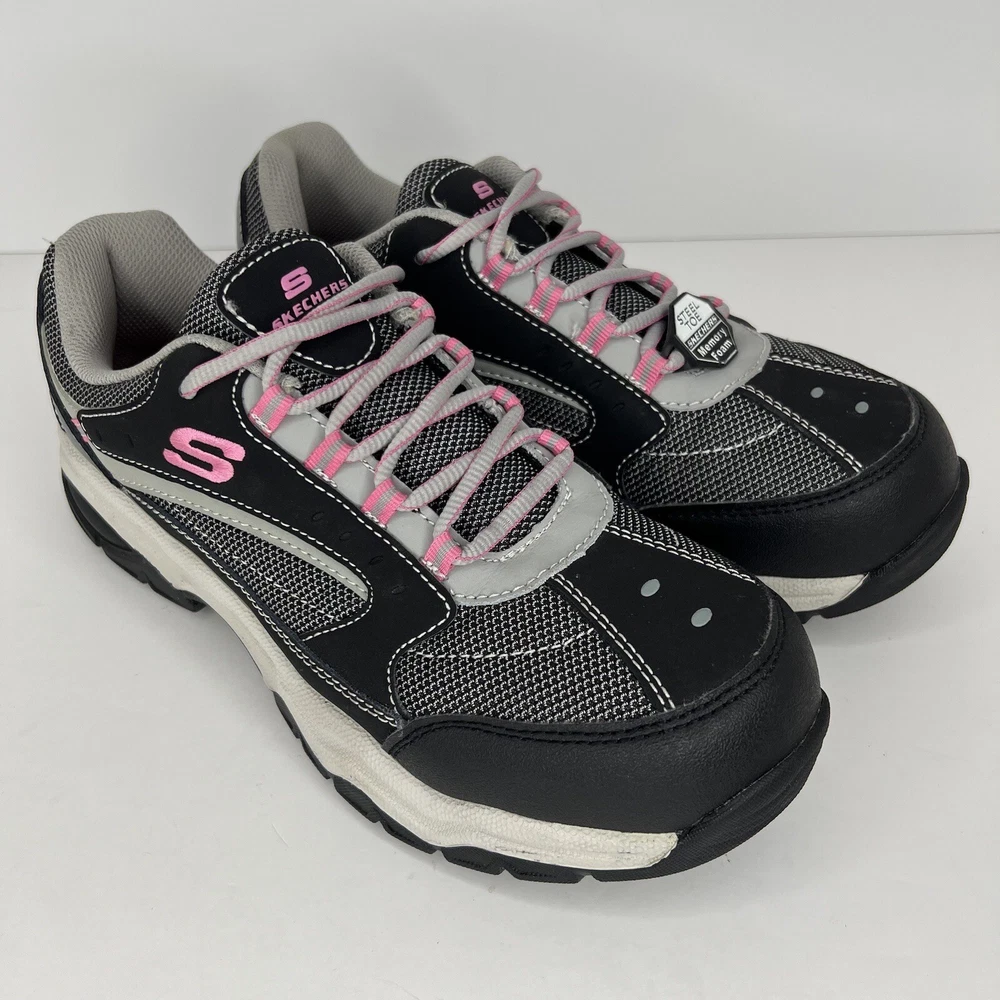 Elevate your work footwear with these comfortable and stylish SKECHERS Work sneakers . Designed for women in size 10, they feature a steel toe and slip-resistant rubber outsole for safety on the job. The shoe shaft style is low top with a round toe and lace-up closure, while the upper material is a combination of leather, synthetic, and textile. These gray and pink sneakers also include memory foam insoles for added comfort during long work hours. Perfect for those in the performance/activity of work, these SKECHERS Work sneakers are a great addition to any work wardrobe. 100% CUSTOMER SATISFACTION IS OUR GOAL! Our items are always carefully examined for condition, measured if necessary, and photographed in a climate controlled and smoke-free environment. We make every attempt to accurately describe and clearly picture the items we have for sale. Please, ALWAYS view all of the photos. We value your business and our goal is your complete satisfaction. FAST SHIPPING All items are packaged with care and shipped out the same or next business day via USPS, FEDEX, or UPS with tracking numbers so you are always informed. RETURNS We offer a 30-day return policy. All items must be unused and unopened in the condition in which they were received, with original packaging, and all accessories included for return. REVIEWS - CUSTOMER SATISFACTION - COMMUNICATION We aim to make you happy. After you receive your shipment, please leave a positive review . If you have concerns or questions about your order, please contact us so we can resolve the issue. We will do our best to make you satisfied. THANK YOU FOR YOUR BUSINESS!