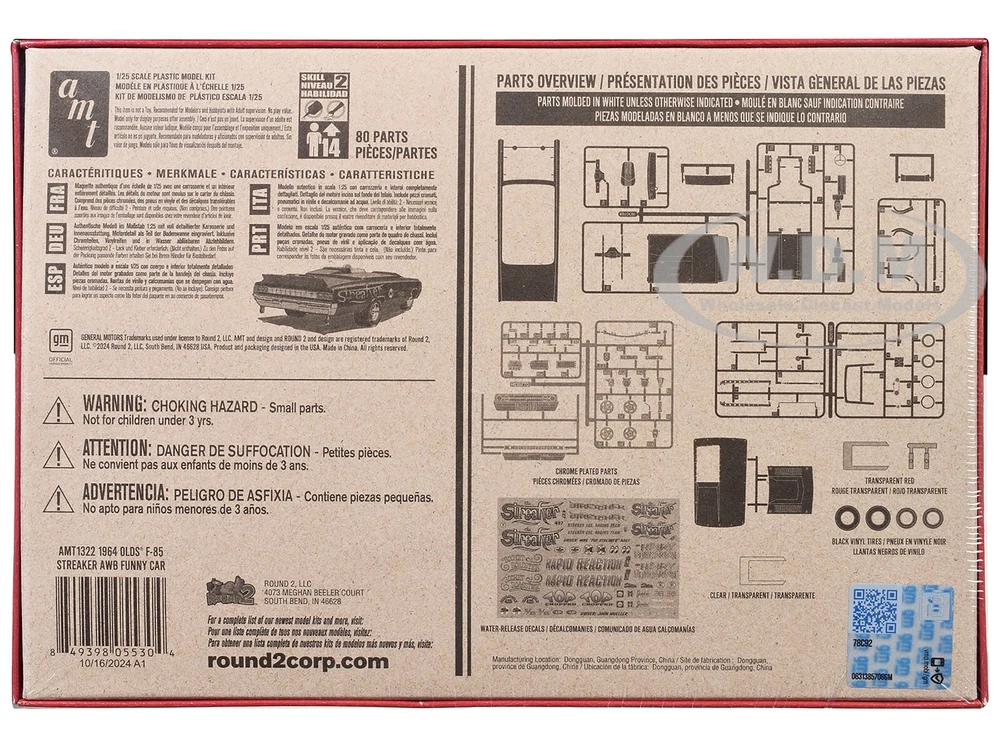SAVE WHEN BUYING MORE!!! Buy as many items as you wish and we will ship them for one low shipping cost to 48 continental U.S. states physical addresses. Example: Shipping cost for most 1/24 scale items is $10, for 1/18 scale items is $12. If you use Add to cart button and purchase 5 items in 1/24 scale and 5 items in 1/18 scale, your shipping cost will be only $12 for 10 items. In order to request combined shipping for signed in desktop users: Please use Add to cart button for desired items, click Go to cart button and press Request total from us before paying and we will send combined shipping invoice shortly. If checking out as a Guest or using a mobile version, please use Add to cart button then click Go to cart button , press Go to checkout button, request extra shipping refund in Message to seller section and finalize payment by pressing Confirm and pay button. We will refund extra shipping cost shortly. DESCRIPTION: Brand new 1/25 scale plastic model kit of 1964 Oldsmobile F-85 AWB Funny Car "Streaker" (Skill 2) 1/25 plastic model kit by AMT. Brand new box. Black vinyl tires. Colorful decal artwork. Vintage style packaging. Officially licensed product. Contains 80 detailed parts. Chrome plated small parts. Includes pad-printed M&H drag slicks. Assembled kit builds to L-8 inches long. Paint and cement required (not included). Manufacturer's original unopened packaging. Parts molded in WHITE, unless otherwise indicated. Built from the ground up, this kit has a whole new chassis, engine, interior, and wheel tooling. PAYMENT INSTRUCTIONS: We gladly accept paypal. Tracking info is free upon request. SHIPPING INFO: We do combine shipping cost for two or more items purchased. Please check shipping and payment section. In order to receive combined invoice for multiple purchases, please purchase items and let us know when you are done shopping, so we can send you one combined invoice. We can only combine shipping cost if items paid in one transaction. Dear Valued Customer! We appreciate your business. BUY WITH CONFIDENCE Fast Order Fulfillment 99% of orders are shipped within 24 hours or sooner. Simple Return Policy Thirty days simple returns. More than 10 Years of Experience Family owned and operated, we’ve had the experience of selling online for more than 10 years. Satisfaction Guaranteed! Our feedback says it all. And now, we hope to have the chance to prove we are the best to you! Competitive Pricing and Unrivaled Selection We are the number one direct distributor of diecast model cars in the USA, so we are able to provide very competitive pricing. Our stock selection is unrivaled with over 4,500 different items. Quality Shipping & Handling We package all our orders with care using bubble wrap to protect models from damage in transit. Each model that has a fragile window box is covered with carton protection. Excellent Customer Service Our customer service is second to none with thousands of returning, satisfied customers from all over the world.