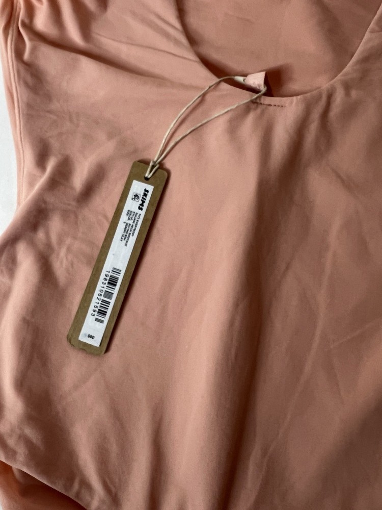 New with tags. Womens small A square neckline and low scoop back make this bodysuit a flattering base layer or everyday wardrobe item. Features a high cut leg opening and thong back that remains invisible under clothing. Fabric Double Layered, Square Neckline, High Cut Leg Opening, Thong Back Remains Invisible Under Clothing, Low Scoop Back, 100% Cotton Gusset, Snap Closure