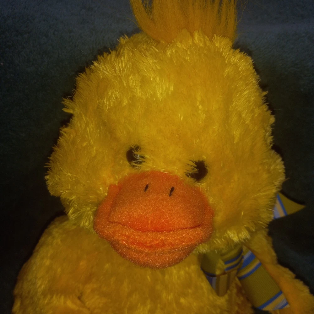SKM Enterprises Yellow Orange Duck Plush Stuffed Animal Brand: SKM Enterprises Item: Stuffed Animal Character: Duck Color: Yellow, Orange With Other Colors Measurements Approx: 11" Used Condition Regular Wear To The Plush Well Loved Plush