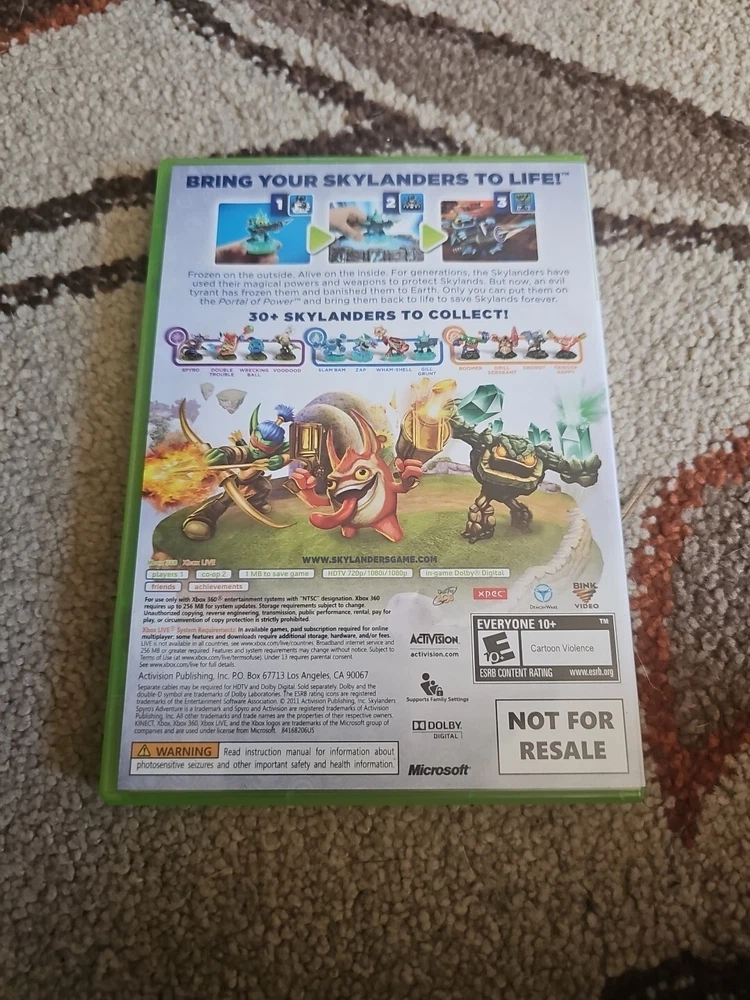 The product is "Skylanders Spyro's Adventure" for Xbox 360, featuring a manual included and a manufacturer warranty of 3 years. It is part of the "Skylanders" video game series and has a sub-genre of hunting. The game is set in Madagascar and offers fast shipping.