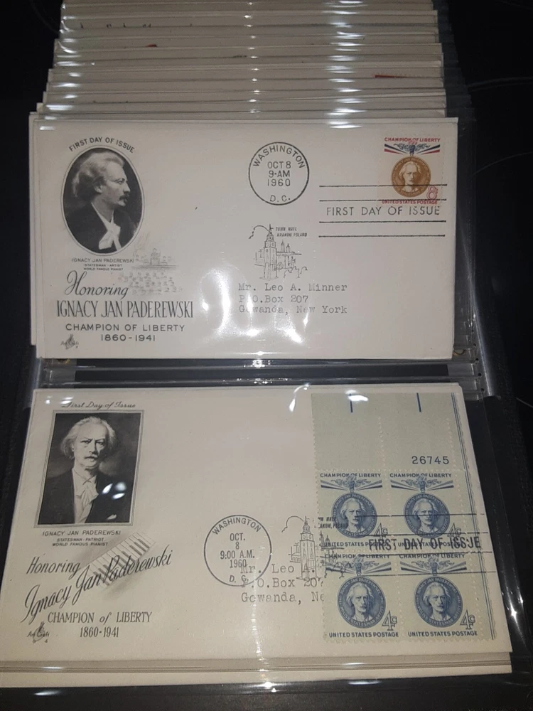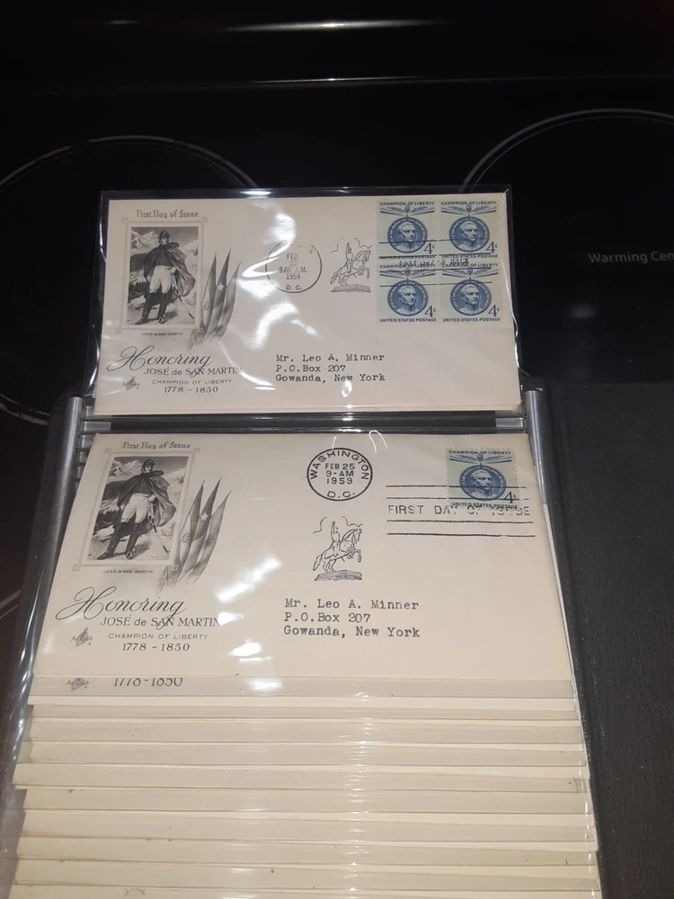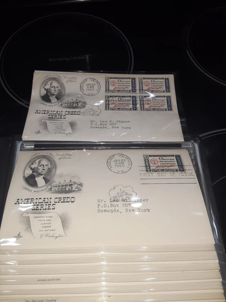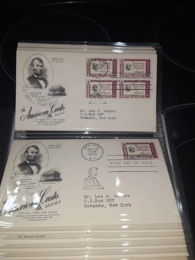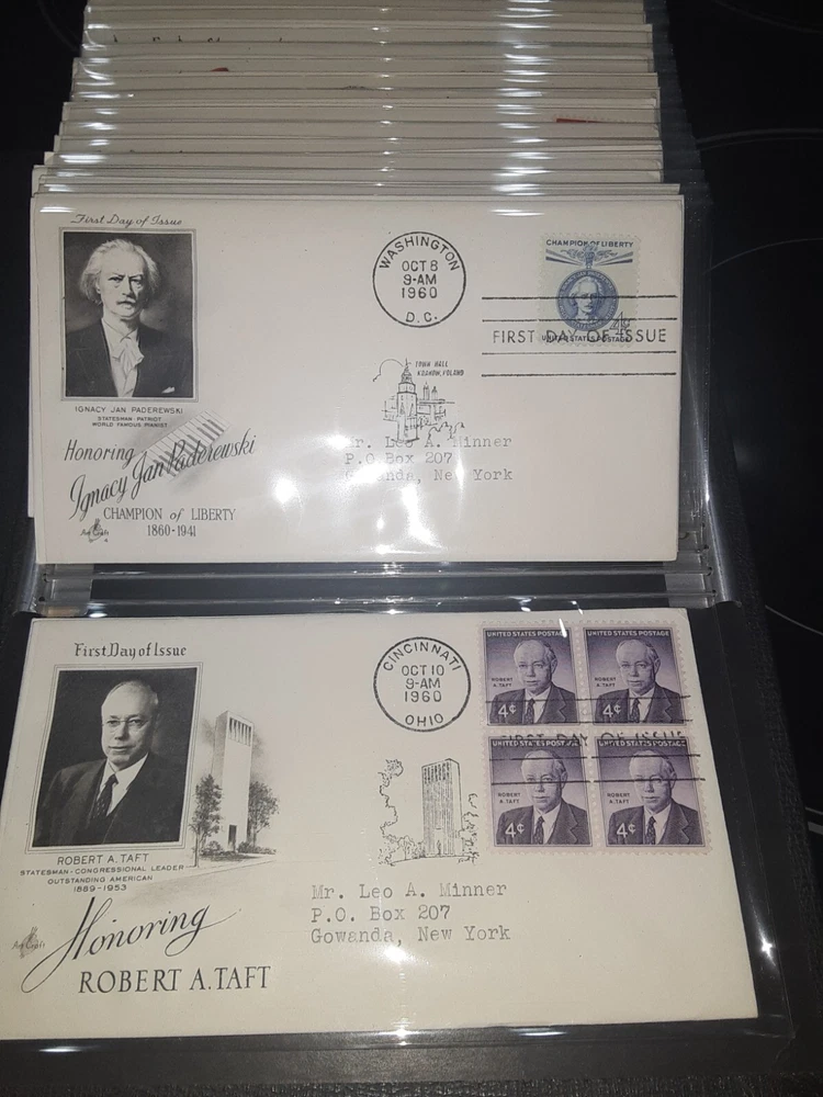 First Day Cover Album is in good condition. Covers are from late 50's and early 60's. Album has a hard cover that it slips into. Album measures Several airmail covers. Album measures 8 x 11.25 x 2.5". 100 covers.