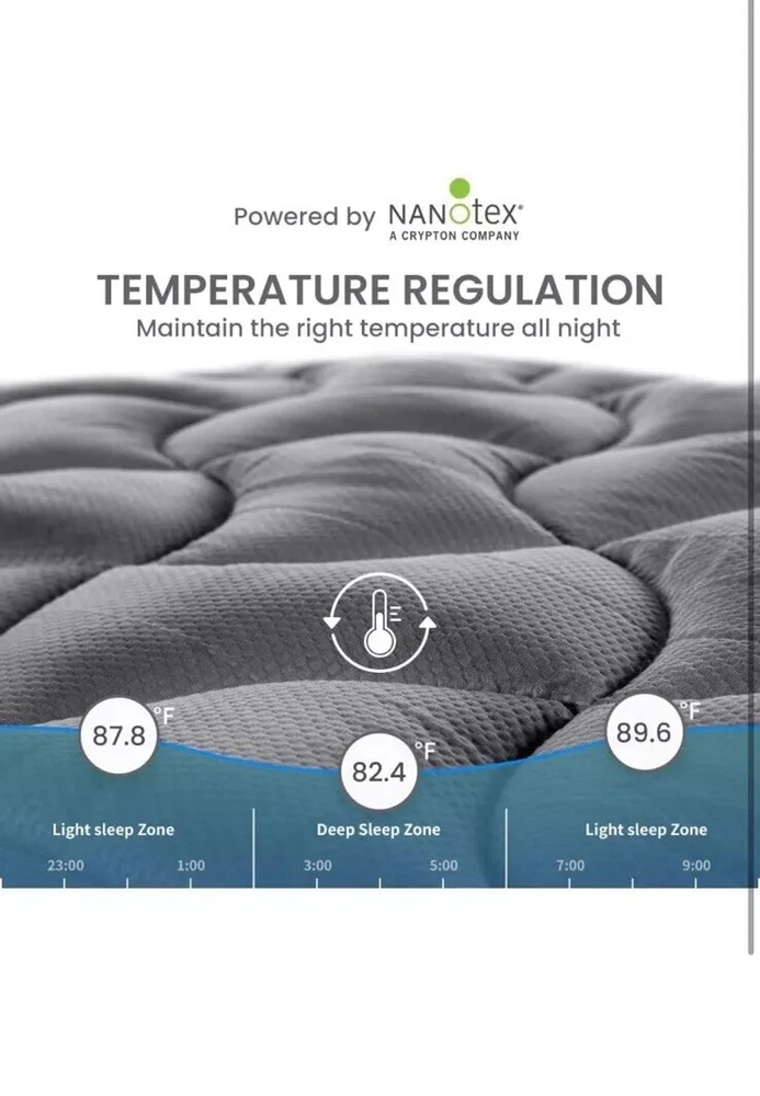 New item! COOLING BREATHABLE - Mattress pad with new NANOTEX Coolest Comfort Technology features moisture-wicking and fast-drying to actually balance your body temperature throughout the night. The sleep surface is treated with an embossed process, which is usually applied to sports fabrics, making it more breathable and stylish than ordinary material and bringing an advanced dynamic vibe to your bedroom. ULTRA SOFT FLUFFY - We use 120gsm thick brushed microfiber as the sleep surface. Overfilled with 12oz 5D spiral fiber, thicker than most on the market. The fiberfill maintains excellent softness and resilience, making this mattress pad super fluffy. Let you enjoy the luxury hotel level of comfort at home. UNIQUE 3-ZONE DESIGN - This mattress pad is ergonomically designed with three zones. The head and foot areas use a wavy design, which can ensure the edge is not deformed. The body area in the middle uses cloud-shaped quilting design to provide a larger body supportive area that disperses the body's pressure and prevents sagging. It helps to keep your body stretched naturally for deep and relaxed sleep. DEEP POCKET EASY CARE - Quilted Stretch-to-Fit (8"-21"): knitted skirt pocket stretches up to 21 inches deep and can be easily placed on most mattresses. The 1.6-inch width of high-quality sport elastic trim securely holds your wrap in place, and its excellent elasticity makes the wrap easy to fit and remove. It ensures you get the most restful and restorative sleep. Machine wash cold, do not use bleach, tumble dry low.