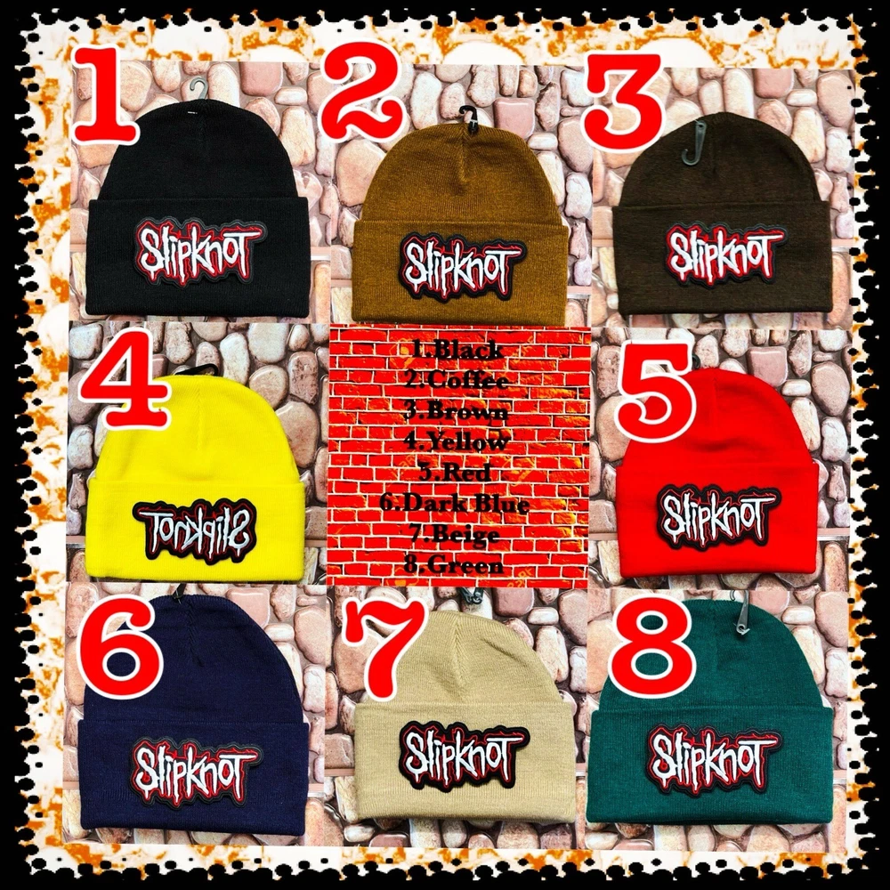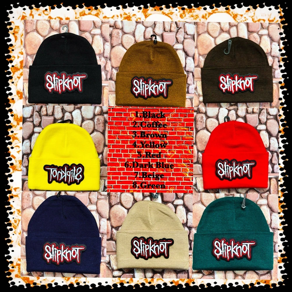 SLIPKNOT BLACK ( OTHER COLORS ) PATCHED BEANIE ➕ NECKLACE