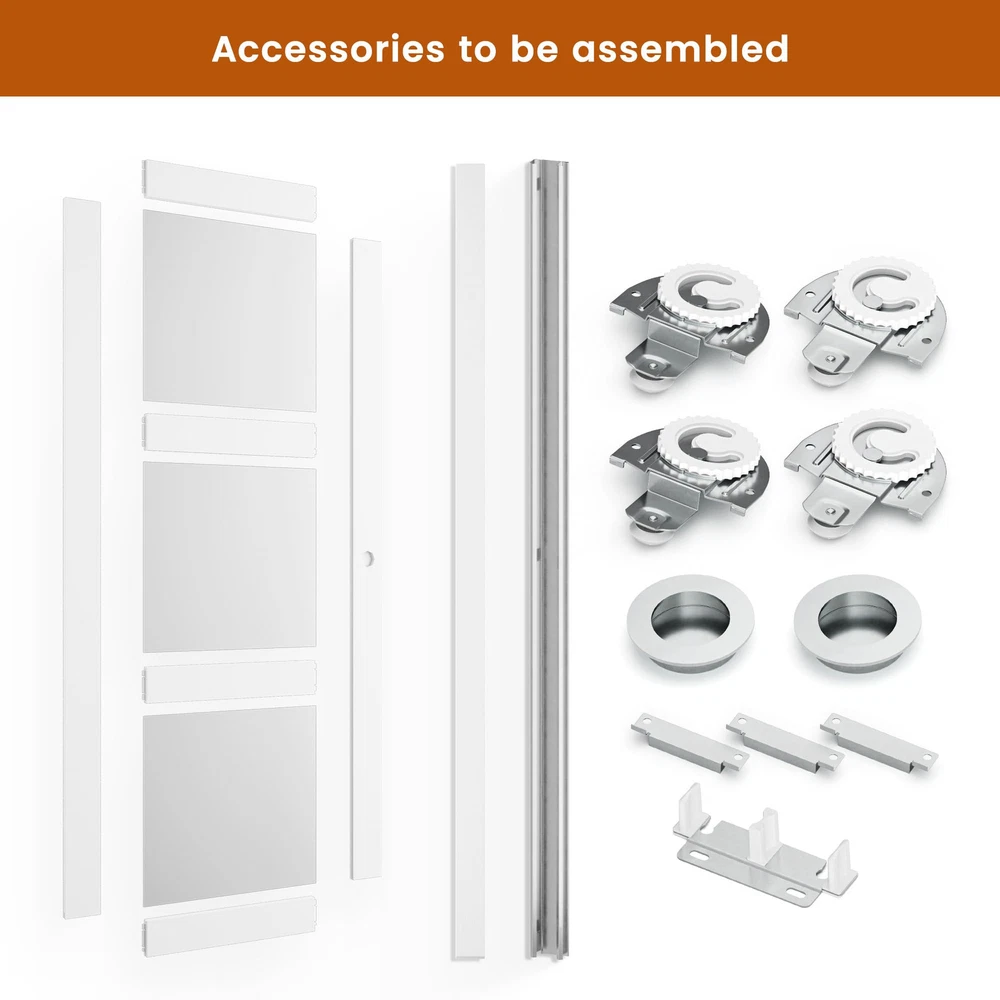 【Material Description】SMARTSTANDARD sliding closet door is made of tempered glass ,PVC film on the surface to prevent scratches and easy to clean,The frosted glass secures privacy while offering natural light. 【Door Sizes】72 "x80" door actual panel size: 2 x 37"(W) x 78 9/16"(H), thickness: 7/8"; The Door size is your door opening size; choose accordingly for the perfect fit. Please note that the door is suitable for door opening heights of 80 inches.(Door Panel Need To Assemble) 【Smooth Track】Our track is designed to be at the top, the track rollers are smooth and noiseless, and the bottom won't scratch the floor or carpet. All track rollers can endure more than 50k opening and closing actions. 【Widely Used】The sliding closet doors with classic design are suitable for most decorating style homes. You can use it in closet/laundry room/storage room/living room/pantries/kitchens and more. Sliding door moves in parallel between the opening and the wall can save space. 【Easy installation】Includes clear instructions with both written explanations and illustrations, making installation a breeze.