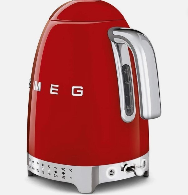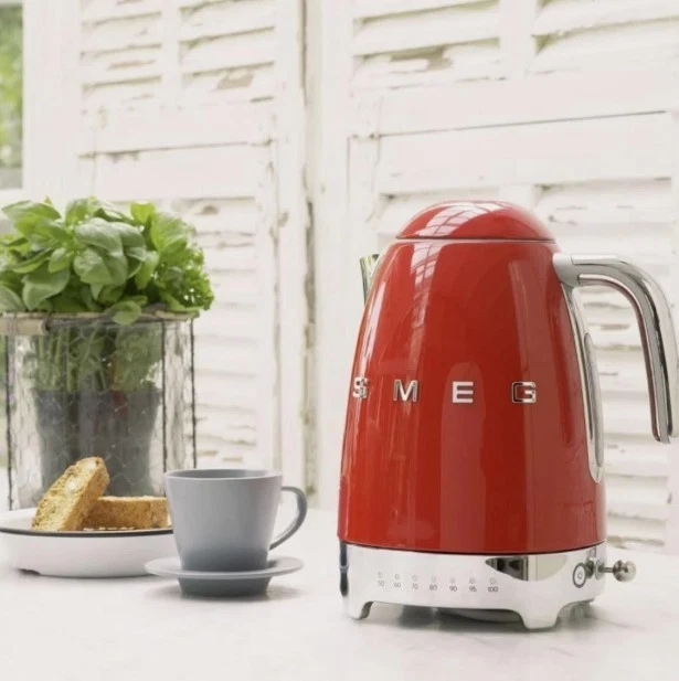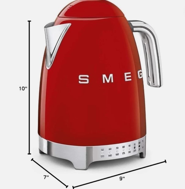 The SMEG Retro Electric Kettle is a stylish and functional addition to any kitchen, with a 7 cup capacity perfect for brewing large batches of tea or coffee. This electric kettle is designed specifically for electric stoves, and features a variable temperature setting for customizable brewing experience. Made of durable stainless steel and weighing 4 lbs, it is both reliable and efficient, with a vibrant red color that adds a pop of color to your kitchen decor. With a voltage of 120V, this kettle is compatible with most standard household electrical systems.