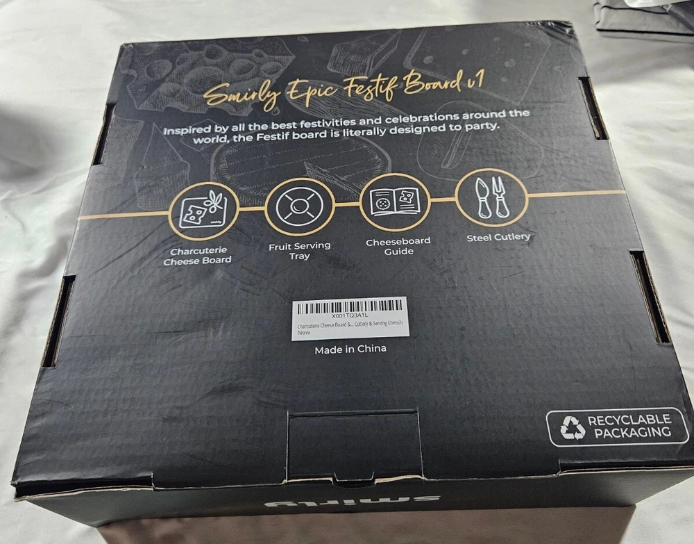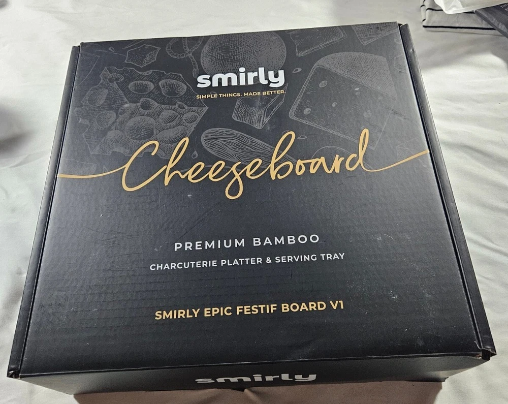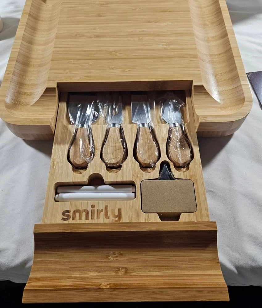 SMIRLY V1 Premium Bamoo Charcuterie Cheese Board Set (Open - Box / New). Won this at a local government auction.