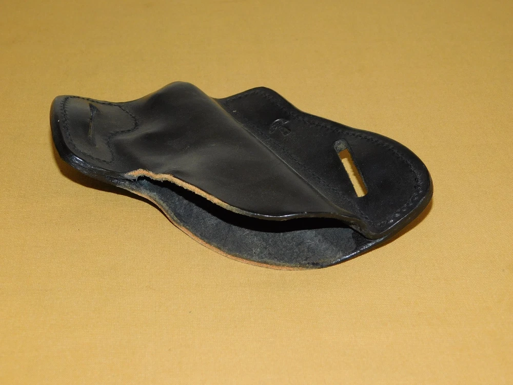 YOU ARE BIDDING ON.... . SMJ RIGHT HAND BLACK LEATHER HAND GUN HOLSTER . ..HOLSTER MEASURES APPROX 6 1/4HIGH....SHOWS SOME USAGE WEAR.........P LEASE VIEW PHOTOS FOR CONDITION.***PLEASE E-MAIL IF YOU HAVE A QUESTION OR WANT AN ADDITIONAL PICTURE....PLEASE VISIT MY EBAY STORE FOR ADDITIONAL VINTAGE ITEMS..THANK YOU***RD 9Q-BX2222-xxxx