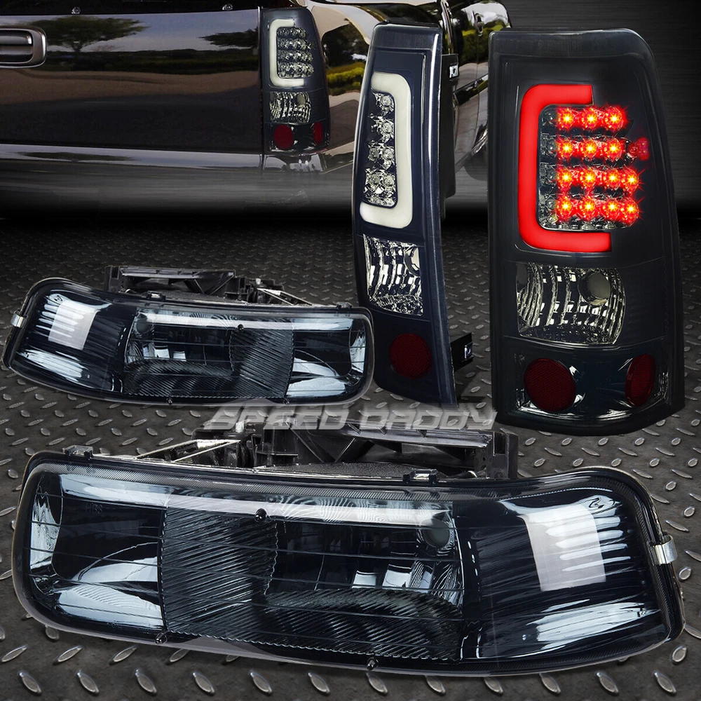 Welcome to Speed Daddy Store Home About Us Feedback Add To Favorites New Arrivals Ending Soon Contact Us SMOKED CRYSTAL HEADLIGHT+CORNER+3D LED BAR BRAKE/TAIL LIGHT FOR 99-02 SILVERADO Product Description A headlight (headlamp) is a lamp attached to the front of a vehicle to light the road ahead. Headlight performance has steadily improved throughout the automobile age, spurred by the great disparity between daytime and nighttime traffic fatalities. Headlights are one of the most important components of your vehicle; they allow you to see the road in front of you clearly during the night and in any bad weather that may arise. Our headlights upgrade the face of your vehicle with clear style and extreme range. Tail lights are a necessity to anyone wanting to add that custom look to their car or truck. Tail lights are perfect for replacing any broken or faded factory tail lights, and give your car or truck an awesome new appearance. Compared to other styling modifications, our tail lights are relatively inexpensive and extremely easy to install. Most cars have a variety of tail lights available, including those with chrome, smoke and carbon fiber housings. Specifics and Features : Headlight: Plug-n-Play Operation, Direct Bolt-On OE Fitment or Replacement for the Stock Unit Comes with a Complete Pair of Headlights(Driver and Passenger Side) Brings a Different Appearance to Vehicle that's Great for Show use or to Replace Old and Worn Headlights Requires no Modification or Drilling Tail Lights: Plug-n-play Operation, Direct Bolt-on OE Fitment or Replacement for the Stock Unit Comes with a Complete Set of Tail Lights (Driver and Passenger Side) Brings a Different Appearance to Vehicle Thats Great for Show Use or to Replace Old and Worn Tail Lights Requires no Modification or Drilling Bulbs not Included LED Lighting LED Light Bar LED Resistors to Prevent Hyperflash Includes : 1 X Pair of Headlights 1 X Pair of Tail Lights Notes : Compatible with: 99-02 Chevrolet Silverado 1500 99-02 Chevrolet Silverado 2500 01-02 Chevrolet Silverado 1500 HD 01-02 Chevrolet Silverado 2500 HD 01-02 Chevrolet Silverado 3500 100% Brand New Installation Instruction is NOT Included Professional Installer is Highly Recommended Shipping Payment Returns Terms & Conditions Feedback Contact Us DOMESTIC LOWER 48 US STATES: FREE SALES TAX: CA ONLY VERY IMPORTANT: Double check shipping address. We are not responsible for incorrect or undeliverable addresses. Please use Shipping & Payments tab on top of page for shipping details for your location. Shipping to PR, HI, AK and PO Box addresses will be charged the same as shipping to Canada. GU, VI, SAIPAN will be charged the same as international shipping rate. For Canada shipping please select the lowest price. We do not offer expedited shipping. US Territories such as GU, VI, SAIPAN will be charged the same as CANADA shipping rate. Transaction will be held until a full shipping amount received. Some of the packages cannot be delivered to a PO Box. Customer is responsible to ensure PO Box address given is deliverable by the shipping company. Package will be held until a valid physical address is provided. Customer assumes shipping charges incurred in shipping to undeliverable address. International buyers are responsible for all customs duties, taxes, and other applicable fees incurred by the country's customs/border regulations. Please contact customs for more information. We ship 98% of all orders the same or next business day after payment received/cleared. Please understand that once orders are shipped, we cannot control the transit times thereafter. Most orders will ship via USPS First Class/Priority Mail or FedEx/UPS or the best suitable carrier for the specific size of the product. We are not responsible for any changes to address after item has been shipped. Item will be shipped out within 24 hours after payment cleared, except for weekends and holidays. PayPal e-check takes 3-7 business days to be processed. We will not ship until an e-check has been cleared. 30 Days Free Returns, please notify us within 30 days after you've received your order. Please email us or call us to obtain a RMA (Return Merchandise Authorization) number from us, and have the RMA number written on the return package. Items to be returned must be in resalable condition. All returns are for refund ONLY. No exchange accepted. For emissions related items, please check with your local jurisdiction for emission specific requirements before purchasing. All items do not come with installation instruction unless otherwise specified. If item is questionable, please consult your local professional/mechanic before making purchase. Shipping DOMESTIC LOWER 48 US STATES: FREE SALES TAX: CA ONLY VERY IMPORTANT: Double check shipping address. We are not responsible for incorrect or undeliverable addresses. Please use Shipping & Payments tab on top of page for shipping details for your location. Shipping to PR, HI, AK and PO Box addresses will be charged the same as shipping to Canada. GU, VI, SAIPAN will be charged the same as international shipping rate. For Canada shipping please select the lowest price. We do not offer expedited shipping. US Territories such as GU, VI, SAIPAN will be charged the same as CANADA shipping rate. Transaction will be held until a full shipping amount received. Some of the packages cannot be delivered to a PO Box. Customer is responsible to ensure PO Box address given is deliverable by the shipping company. Package will be held until a valid physical address is provided. Customer assumes shipping charges incurred in shipping to undeliverable address. International buyers are responsible for all customs duties, taxes, and other applicable fees incurred by the country's customs/border regulations. Please contact customs for more information. We ship 98% of all orders the same or next business day after payment received/cleared. Please understand that once orders are shipped, we cannot