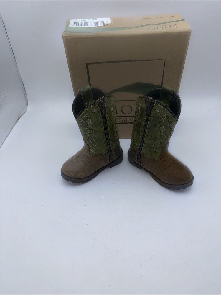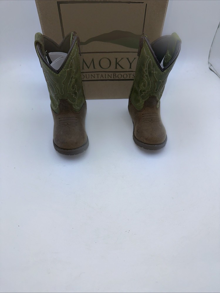 The Smoky Mountain Boots Kids' Unisex Toddler Hopalong Western Boots in size 4 are stylish and versatile for young children. Made with a leather upper, these pull-on boots feature a u-toe shape and Western accents. The brown distress color and embroidery details add a touch of flair, making them perfect for casual occasions. With a comfortable fit and unisex design, these boots are a great choice for young adventurers looking to add a touch of Western flair to their wardrobe.