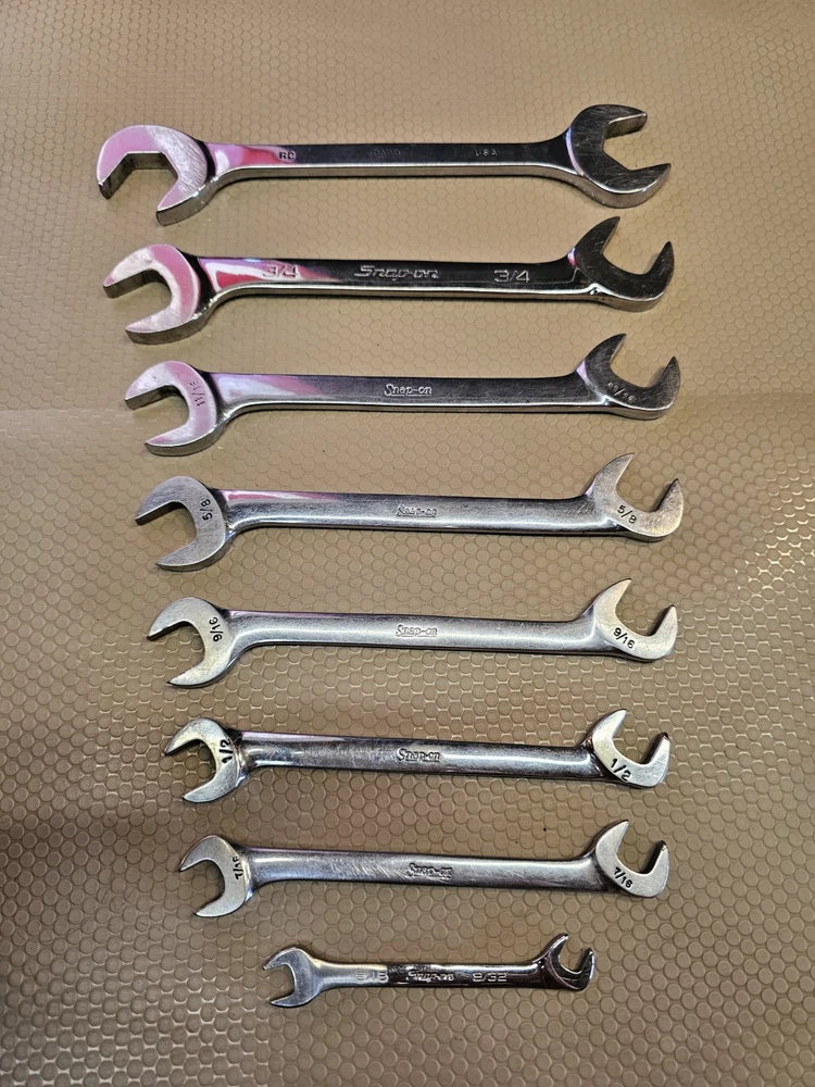 Brand:Snap-onUPC:Does not applySystem of Measurement:SAESize:3/8"-3/4"Set or Single Item:SetManufacturer Part Number:VS807BNumber of Pieces:7gtin13:Does not applyType:4-Way Angle Open-end Wrench