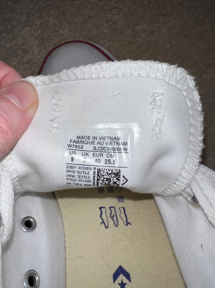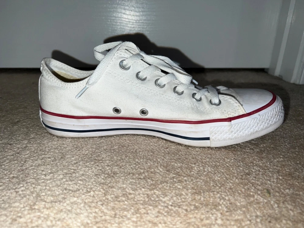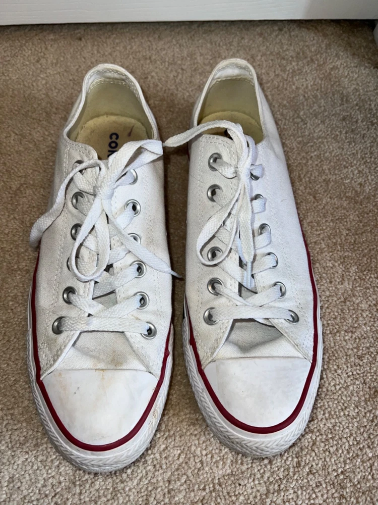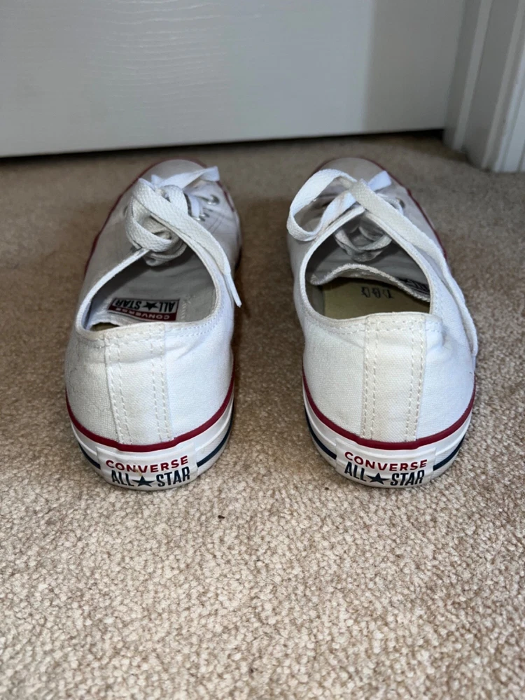 SNEAKERS DESCRIPTION : MADE BY : Converse All Star SIZE : 9 M - Women's COLOR : White DESCRIPTION : Sneakers - Low Top - Lace Up CONDITION : Excellent used condition. Show minor scuffs & wear (see pics) - they still have a lot of life left in them. PAYMENT : Payment is due within 3 days of the end of the auction. SHIPPING : Shipping is via US Post Office ONLY. RETURN POLICY : I list items to the best of my ability and try to describe each item as best as possible. Most of the items I sell are purchased at thrift shops/garage sales/etc, therefore I do not know the history to each item. Unless stated new, they are pre-owned items. I cannot guarantee items I sell are from smoke/pet free homes originally. My home is smoke free, however, I do have pets. Because computer monitors and phone screens vary in their ability to display color, color of the actual item may vary slightly. Color is not an acceptable reason for return. Items may be returned for a refund of bid price only (I will not refund any postage). Refunds will be issued once I receive the item back in the same condition as it left. If you have any problems please email me before leaving feedback. Please check out my other items - I will gladly combine shipping! Email me if you have any questions.