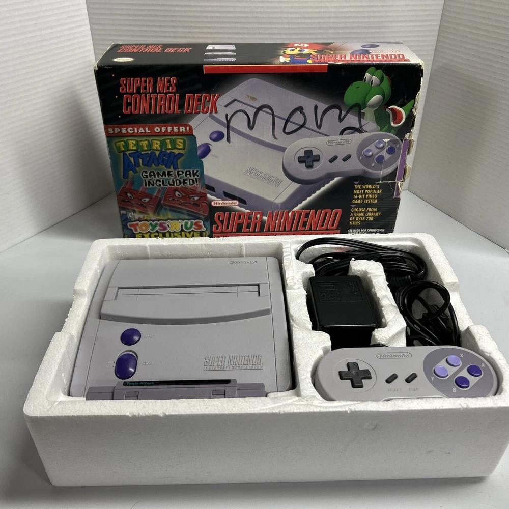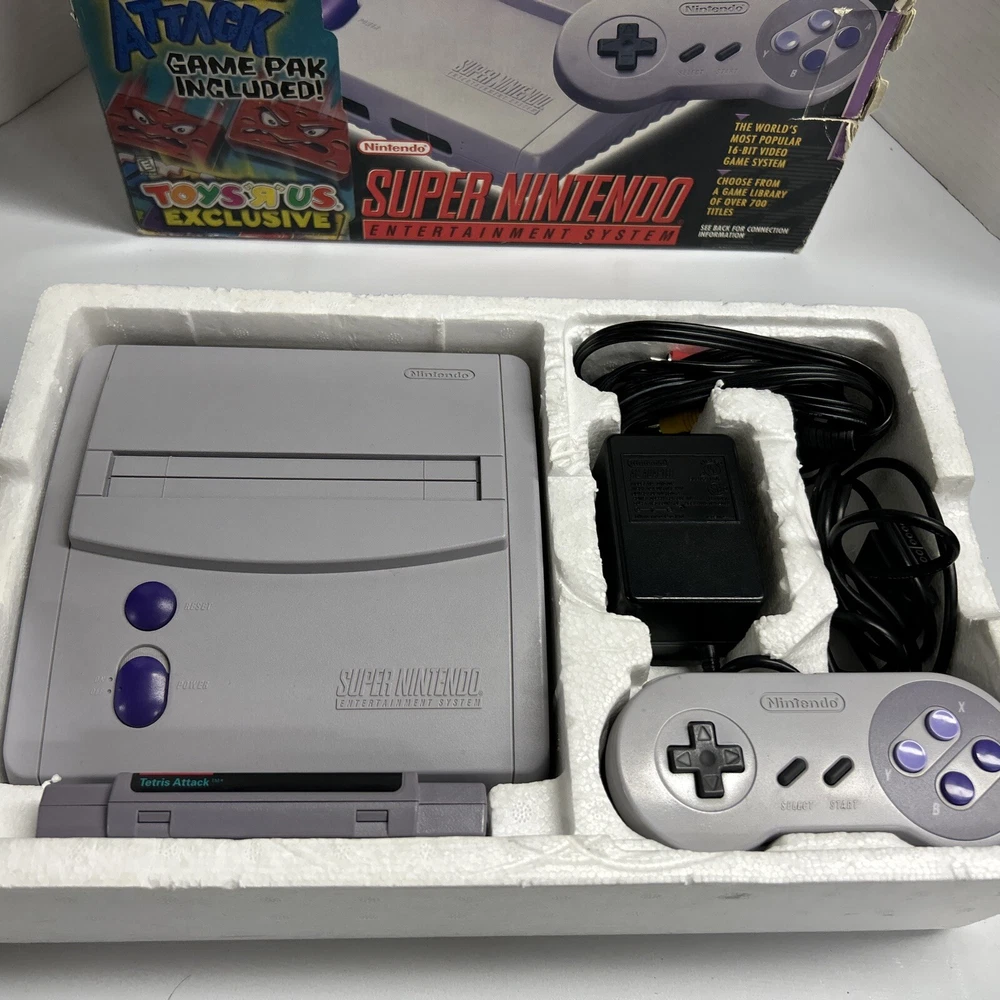 SNES Jr Console Tetris Attack Toys R' US exclusive In Box working rare!. Condition is Used. Shipped with USPS Priority Mail.
