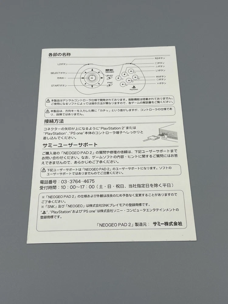 SNK Neo Geo Pad 2 Controller for PS2 Playstation2 KOF Boxed Original Japan Game Description If you have any question or concern, please do not hesitate to contact me. Thank you for visiting. Please Note for International Buyers We ship items from Japan. Import duties, taxes (example VAT, GST), and charges are not included in the item price or shipping cost. These charges are the buyer's responsibility. Please check in advance about those additional costs in your customs office before buying. Generally, those additional costs will be charged by the carrier when you receive the item. We write the customs declaration correctly. No undervalue. No checkmark gift. Click here and go to my listings!