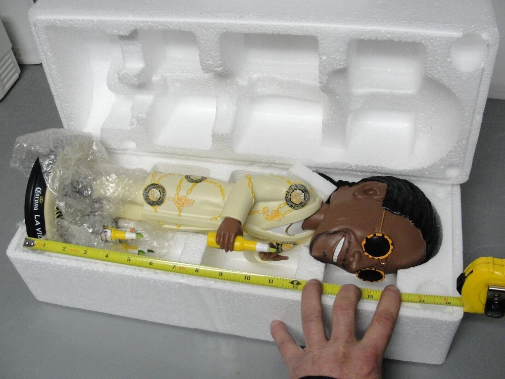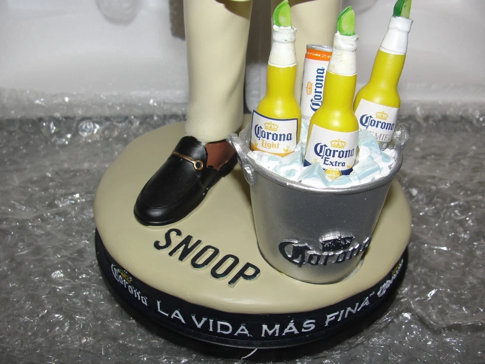 SNOOP DOGG COLLECTORS EDITION BOBBLEHEAD NODDER 2022 ☮️ CORONA BEER 18" NEW NIB Up for your consideration is this AWESOME Corona Beer 18" Tall Snoop Dogg Bobblehead that comes to you brand new in the box. This 2022 Collector's Edition is Super RARE and not an item that you will come across often. Snoop Dogg stands on a base with a mini faux "Corona" branded ice bucket near his feet and complete with faux ice cubes and filled with Corona beer bottles and 1 Hard Seltzer can. Next to the bucket it reads "Snoop" in navy blue lettering. He is sporting a long yellowish white jacket or robe with a chain and medallion design. He wears a faux gold chain around his neck, 2 gold rings on his hand, and black dressy yet casual slip on shoes. He holds a faux bottle of Corona Extra in his one hand and the other hand throws up the "peace" sign. The base reads "La Vida Mas Fina" which translates to "The Finest Life". This 18" tall bobblehead is a RARE find and will be the coolest display for your bar, mancave, or retail location. Please see the other items we have listed. FEATURES: Brand New in the Box RARE 2022 Collector's Edition Snoop Dogg Bobblehead - Hand Painted Bobblehead stands 18" tall - La Vida Mas Fina on Base - Snoop Dogg is wearing a long yellowish white robe and black slip on shoes plus faux gold chain and rings - He holds a faux bottle of Corona Extra Beer in one hand and throws up the "peace" sign with the other hand - Faux Corona branded ice bucket on the base with faux ice and filled with beer - This will make the coolest addition to your collection or perfect display item at your store, bar, or mancave ADD. INFO : This is just one of many Modelo and Corona beer items that we have listed, including - buckets - signs - a lot of different bottle openers - cozi's - hats - tap handles - bar accessories - sunglasses - D.O.T.D. glass tumblers and multi-tools just to name a few. If you want to see them all just click on the "see sellers other items" link and then in the search box type "BEER" and all the beer swag will be displayed. If you want a bunch of different items we will be happy to combine all the items bought on the same day together to save you money on shipping. Just eBay mail for more details or with questions. INCLUDED: One Brand New in the Box 2022 Collector's Edition 18" Snoop Dogg Bobblehead as pictured. NOT-INCLUDED: No props used for size reference. BRAND: Crown Imports, Corona Beer LABEL: N/A DIMENSIONS: The bobblehead measures 18" tall. COLOR: Multi Colored Bobblehead TYPE: Collectibles, Bobbleheads, Snoop Dogg, 18" MODEL #: N/A COPYRIGHT DATE: 2022 CIRCA: Likely around 2021 COUNTRY: China MATERIAL: Epoxy Resin CONDITION: This comes to you brand new in the original box in excellent condition. We opened it for the first time for the pictures. It comes to you brand new in excellent condition. AUTHENTICITY and your SATISFACTION are UNCONDITIONALLY 100% GUARANTEED!!! Once you get it - if you are not thrilled just let me know - I gladly accept returns. Check my feedback and buy with complete confidence I have been selling on eBay everyday since 2001. SHIPPING DETAILS: The buyer pays for securely packed EXPEDITED shipping. It will include tracking and insurance. For premium services delivery to your address will usually take between 3 to 5 days. I will always combine shipping to save you money whenever possible, just email us to let us know. Please be sure to click on the shipping tab to compare rates and see all of the options available for shipping, some options cost less than others. SHIPPING CONDITIONS: *** Please Take Note!!! When paying we can ONLY ship to the address that is included with your payment . If you need it sent to a different address please change that PRIOR to making payment. We can no longer change the ship to address. LOC: SB You really like the thing, but not so much the price... I find cool stuff, do some research and list it for what I think it's worth. Sounds pretty simple but sometimes not. So if this is something you really like but its a bit more than you had hoped to pay, then be sure to watch this because I can't send it to the bank, and if it ends without a buyer chances are good that I will drop the price and re-list it until it does sell! Two things for sure - it will get sold sooner rather than later, and that's better for both of us. International Buyers We will ship to most, but not all locations around the world. We use Priority Mail, and it will include full insurance and delivery confirmation. Unfortunately we do not ship using first class international mail because there is no insurance available. "Import Duties", "Tariffs" and "Taxes" are NOT included in the item price or shipping charges. These charges are imposed and collected by your country and are your responsibility. Please check with your country's customs office to determine what these additional costs (if any) will be prior to bidding/buying. These charges are normally collected by your customs office when you pick the item up or upon delivery ? please do not confuse them with shipping charges, they are not. Buyers using the Ebay Global Shipping Program will be shown these cost prior to purchase. We can NOT reduce the value on the "Customs Forms". The sales prices is automatically entered and also sets the maximum amount that the item can be insured for. We can not mark items purchased by you as "gifts". Some countries restrict or prohibit the import of certain items such as currency - jewelry or animal parts such as teeth, claws, horns or shells from many creature on the endangered specie list. The lists varies widely and changes often. It is your responsibility to check and make sure your country allows this specific item to be imported by you. We take a great deal of pride in our feedback rating and never want you surprised by anything you get from us. PLEASE If there is ever an issue, all we ask is that you give us an opportunity to address it BEFORE leaving feedback. Ov
