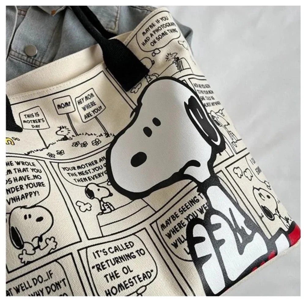 This Snoopy tote is perfect for everyday use—spacious, sturdy, and super cute! The zipper keeps everything secure, and the size fits all my essentials. Love the design, and it arrived quickly! Highly recommend for Snoopy fans.