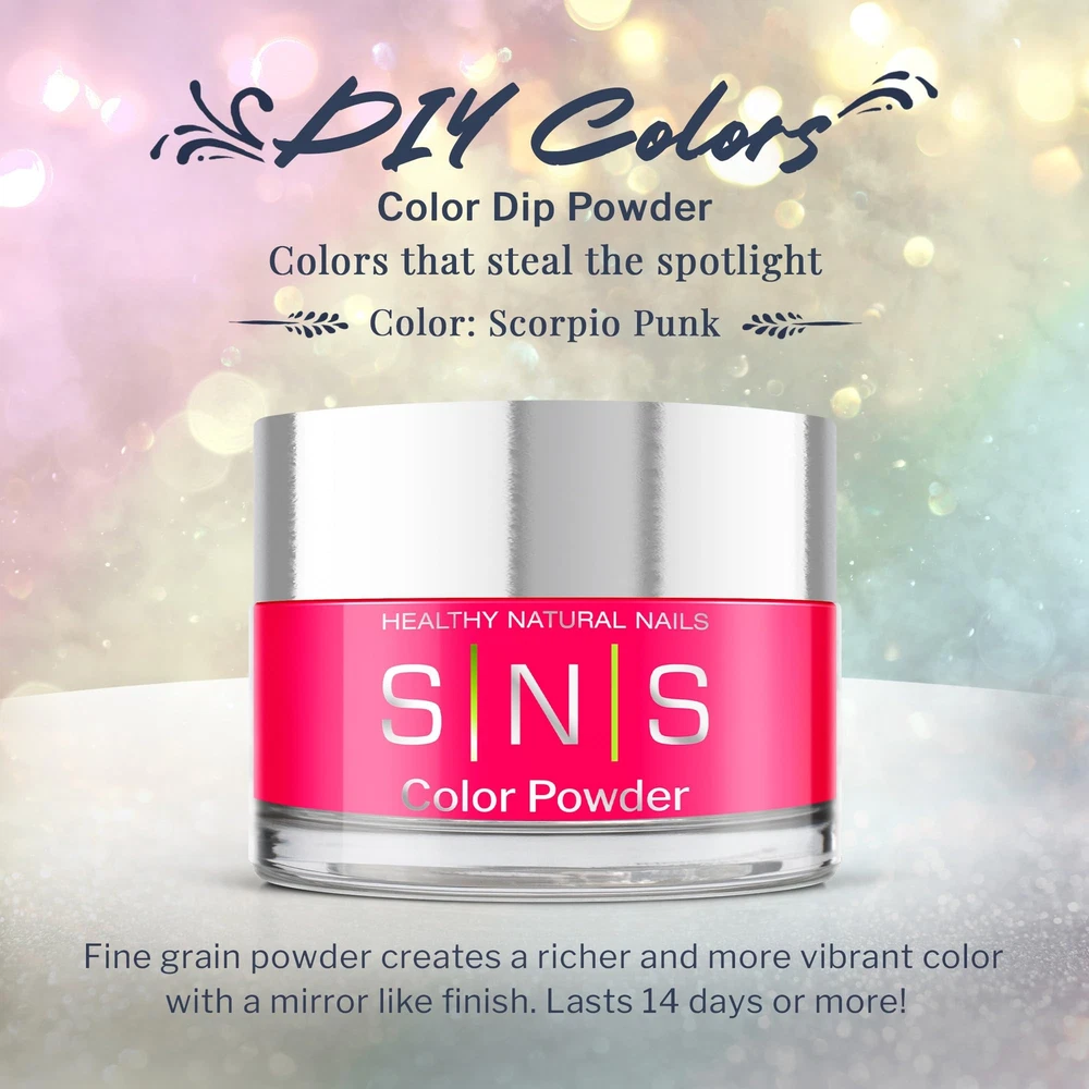 OVER 100 PREMIUM COLORS: Unlock the beauty of self-expression with SNS Nails' DIY Colors Collection. Dive into a spectrum of stunning shades made for the DIY enthusiast in you. This dip collection is made with fine grain that helps create a richer and more vibrant color. Our skin-friendly, low-odor formula dries instantly and creates a stunning, mirror-like finish without needing UV light. Color: Scorpio Punk (red, neon) OVER 100 PREMIUM COLORS: Unlock the beauty of self-expression with SNS Nails' DIY Colors Collection. Dive into a spectrum of stunning shades made for the DIY enthusiast in you. This dip collection is made with fine grain that helps create a richer and more vibrant color. Our skin-friendly, low-odor formula dries instantly and creates a stunning, mirror-like finish without needing UV light. Color: Scorpio Punk (red, neon) GET LONG-LASTING COLOR AT HOME: Bring the nail salon experience home with our flexible, yet strong dip that lasts 14 days or more and is chip resistant STRONGER & MORE FLEXIBLE NAILS: Only SNS brings you bases and topcoats formulated with the Nutri-Plus System. Enriched with nutrients that help nourish the natural nail and surrounding cuticles, packed with Vitamins A, E, D, B5, plus calcium and 10 FREE: Our dip powders and adhesives are formulated to be 10 Free, meaning free from a variety of harsh chemicals. We are also enhanced with ingredients to help support nail growth HEALTHY, BEAUTIFUL NAILS: Color creation is an art, and it takes decades to perfect. Over the past 30 years, SNS Nails has developed unrivaled mastery in nail color creation. You can recognize SNS by the extra richness and depth of the colors, and the way they radiate in that head-turning way