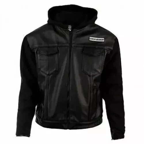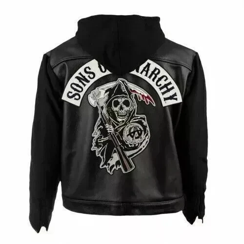 SOA Sons of Anarchy Highway Motorbiker Hooded Real Leather Jacket
