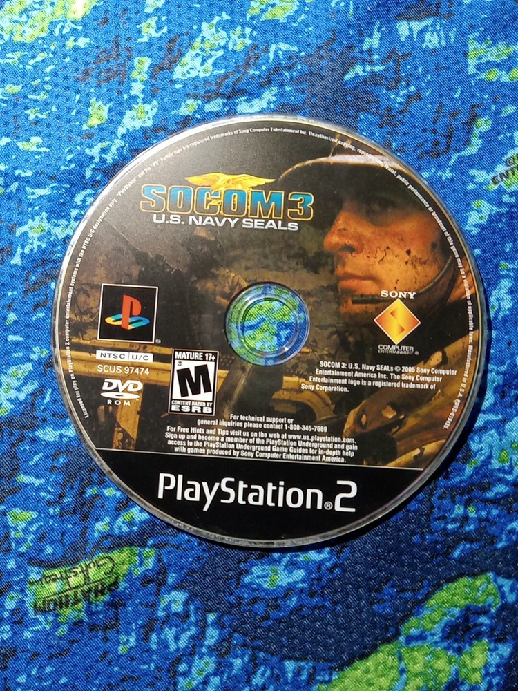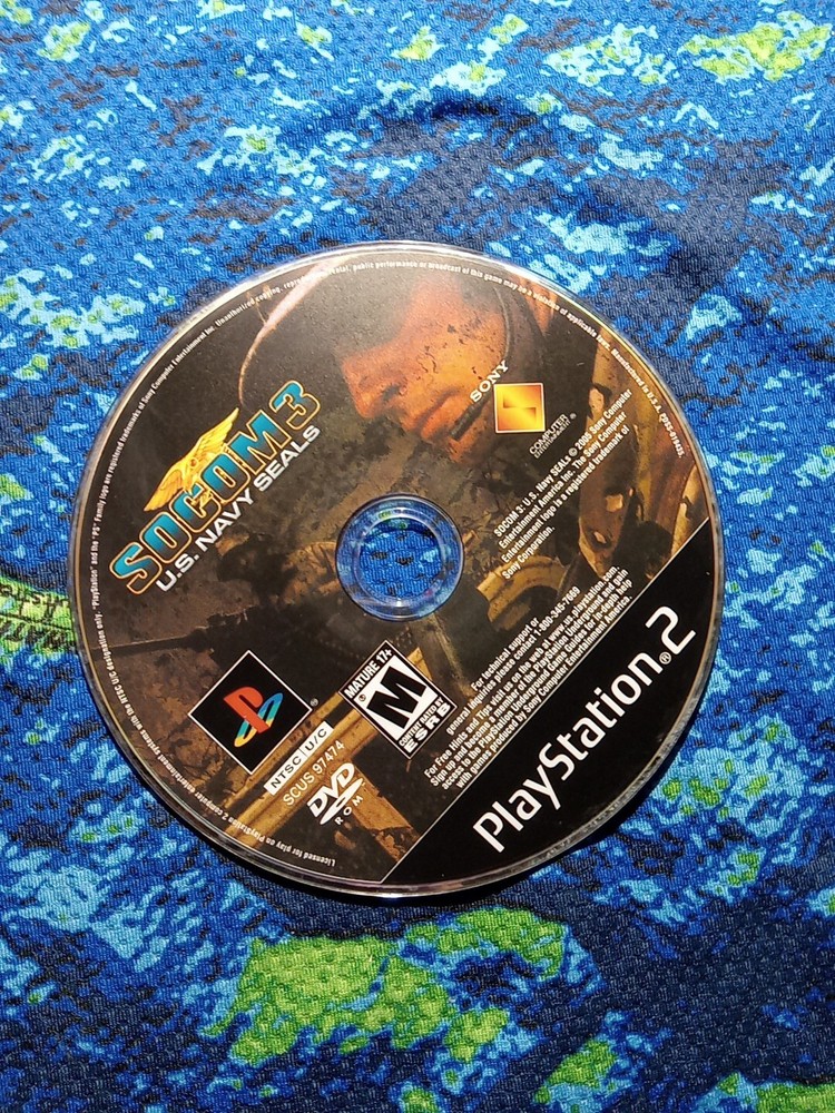 SOCOM 3: U.S. Navy SEALs is a shooter video game for the Sony PlayStation 2, released in 2005. It is part of the Socom: U.S. Navy Seals series, published by Sony Computer Entertainment. The game is rated M for Mature and is in NTSC-U/C (US/Canada) region format. This listing specifically includes the black label disc only.