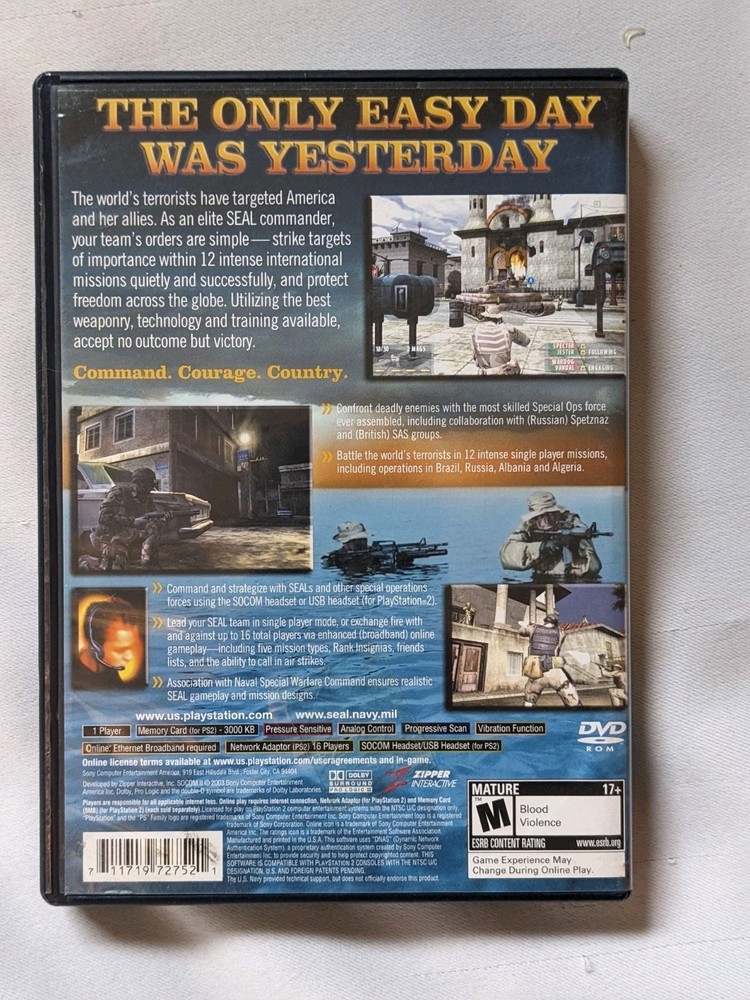 gtin13:0711719727521Game Name:SOCOM II: U.S. Navy SEALsRelease Year:2003Video Game Series:Socom: U.S Navy Seals SeriesUPC:0711719727521Genre:ShooterPlatform:Sony PlayStation 2Rating:M - MaturePublisher:Sony Computer Entertainment