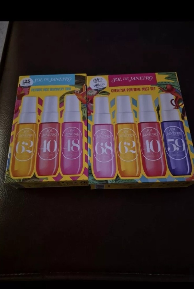BOTH ARE BRAND NEW IN BOX STILL SEALED SOLD OUT SETS!!!!!!!! SOL DE JANEIRO PERFUME MIST DISCOVERY TRIO INCLUDES SOL DE JANEIRO CHEIROSA 62 1 FL OZ SOL DE JANEIRO CHEIROSA 40 1 FL OZ SOL DE JANEIRO CHEIROSA 48 1 FL OZ SOL DE JANEIRO CHEIROSA PERFUME MIST SET INCLUDES SOL DE JANEIRO CHEIROSA 68 1 FL OZ SOL DE JANEIRO CHEIROSA 62 1 FL OZ SOL DE JANEIRO CHEIROSA 40 1 FL OZ SOL DE JANEIRO CHEIROSA 59 1 FL OZ