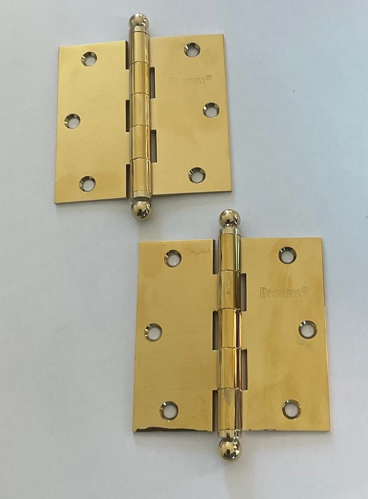 SOLID BRASS Bravura 3.5" x 3.5" Square Door Hinge PVD Brass - No Rust. Condition is New. Shipped with UPS Ground.