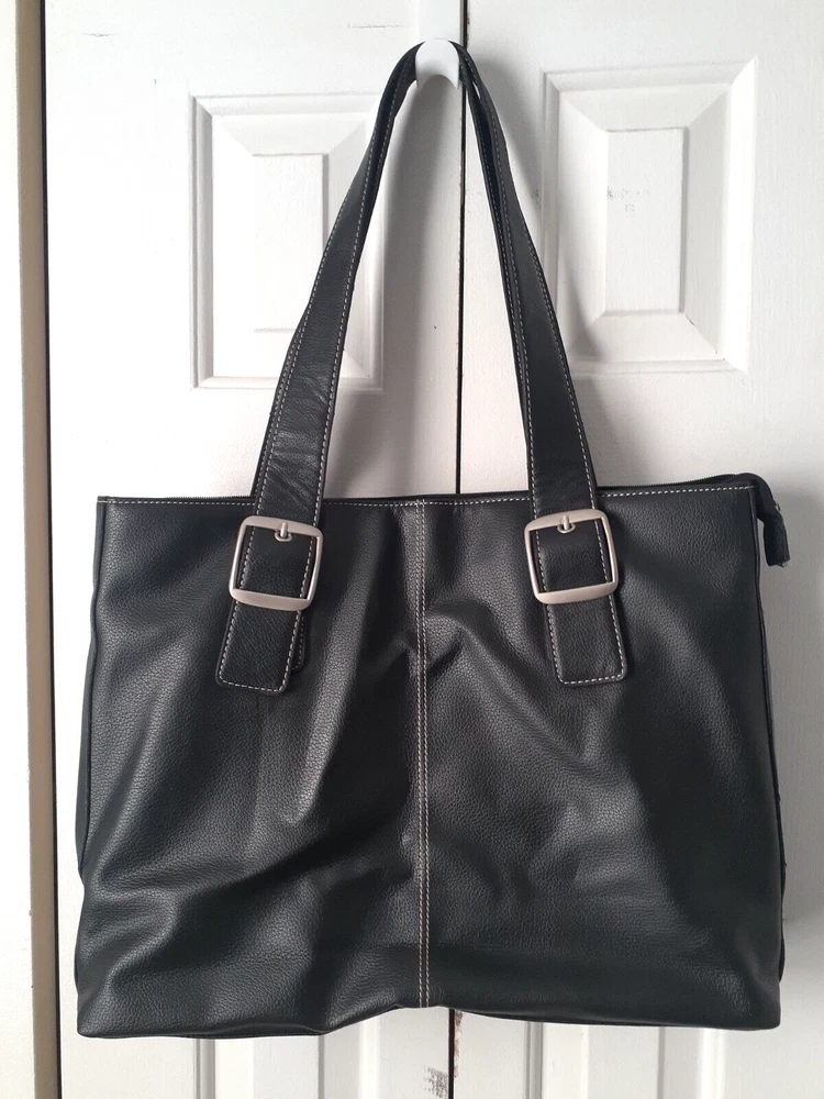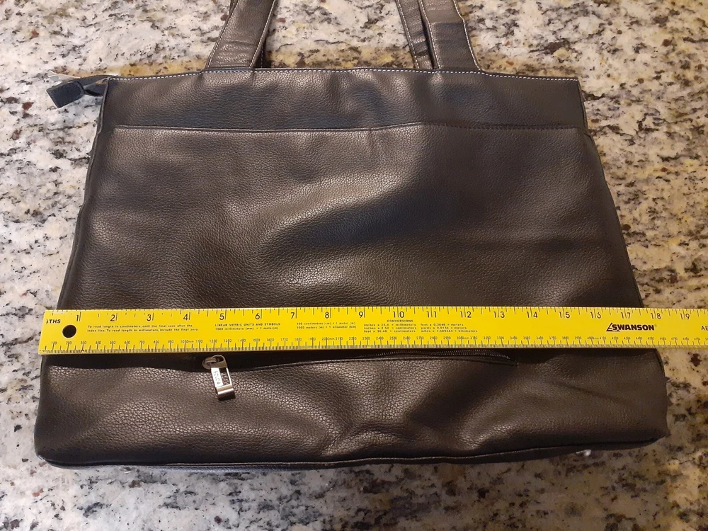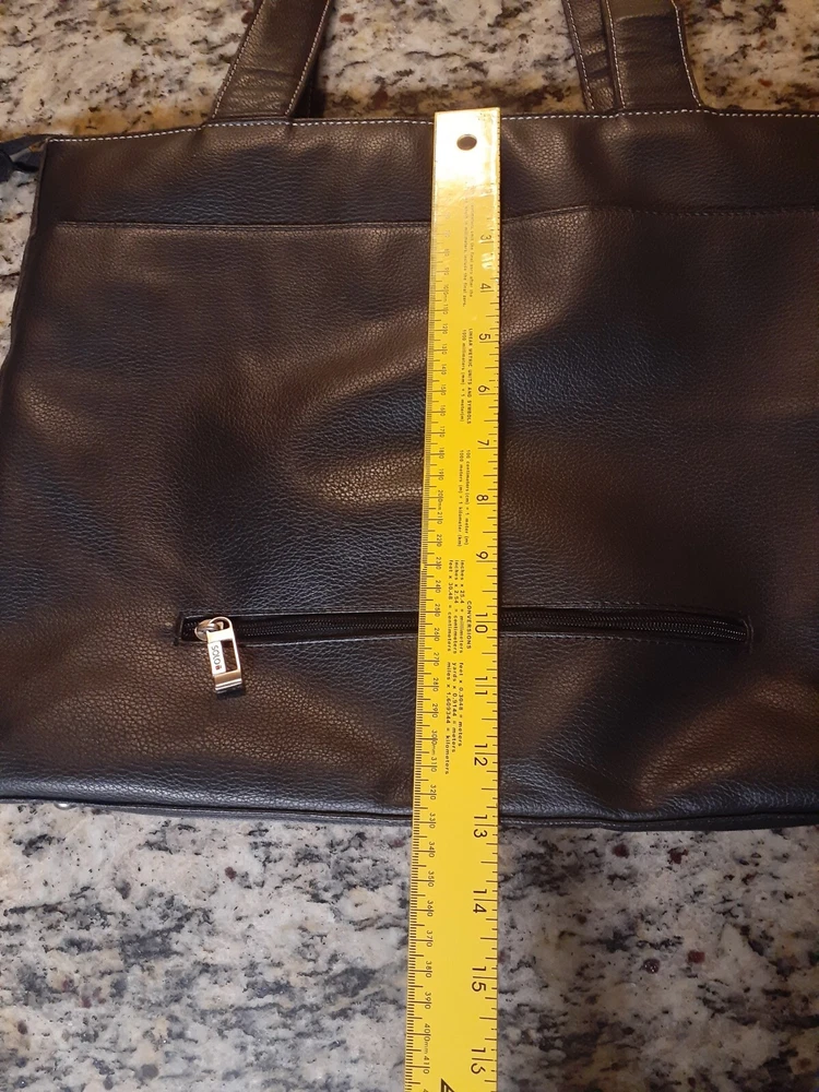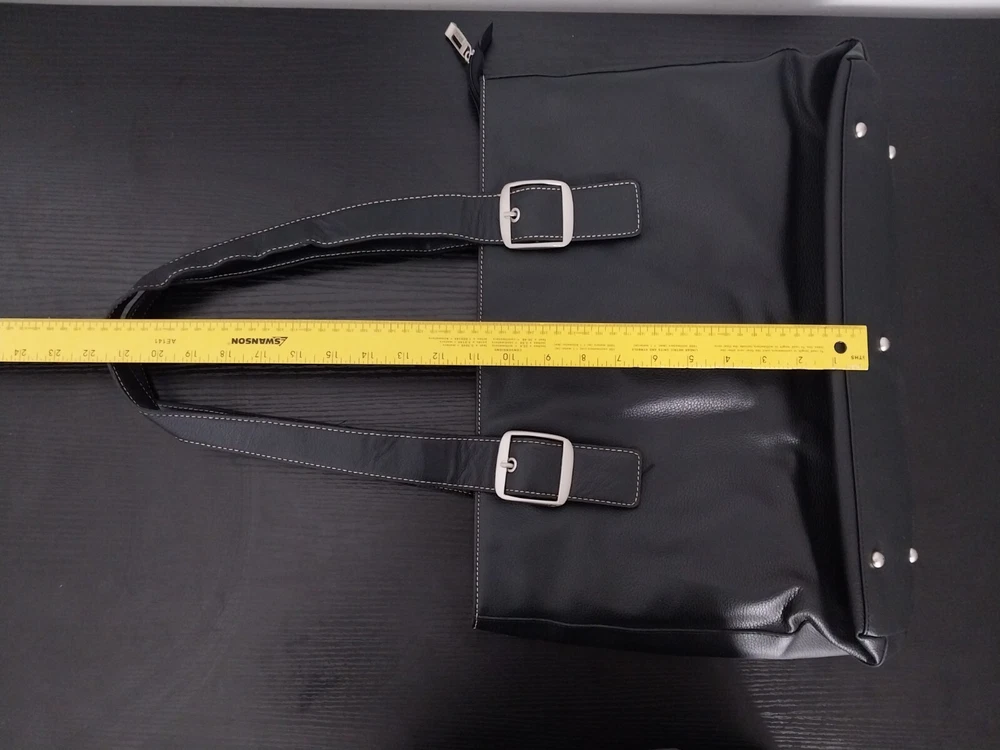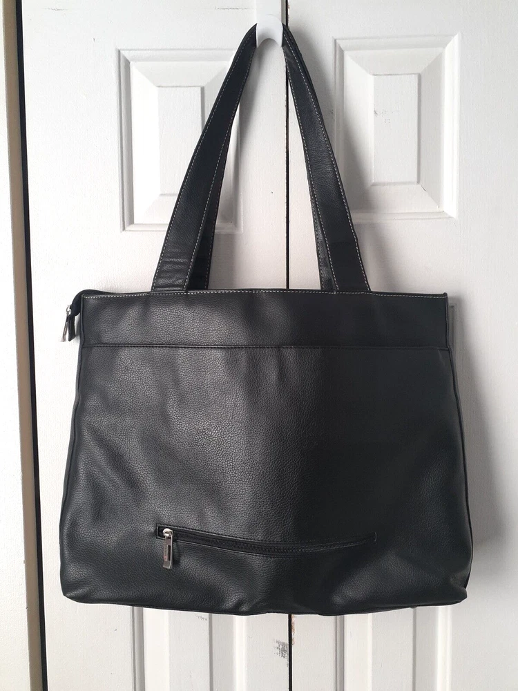 Bag Width: 17 in Country/Region of Manufacture: China Model: Not Applicable Lining Color: Beige Shape: Rectangle Occasion: Business, Travel, Workwear Accents: Inside Key Holder Product Line: Not Applicable Size: Large Character: Not Applicable Hardware Material: Aluminum Fabric Type: Rayon Pattern: Solid Finish: Matte Features: Inside Pocket, Inside Key Holder Personalize: No Bag Depth: 5 in Seller Notes: “Hand bag is Great condition as seen in photos. Please note tote bag may be folded for shipping.” Vintage: Yes Character Family: Not Applicable Theme: Fashion, 90s Brand: Solo Exterior Color: Black Bag Height: 13 in Style: Shoulder Bag Hardware Color: Silver Closure: Zip Personalization Instructions: Not Applicable Lining Material: Fabric MPN: Does Not Apply Exterior Material: Faux Leather Handle/Strap Material: Faux Leather Department: Women Handle Style: Double Handles Accessories: Key Holder Handmade: No Handle/Strap Color: Black