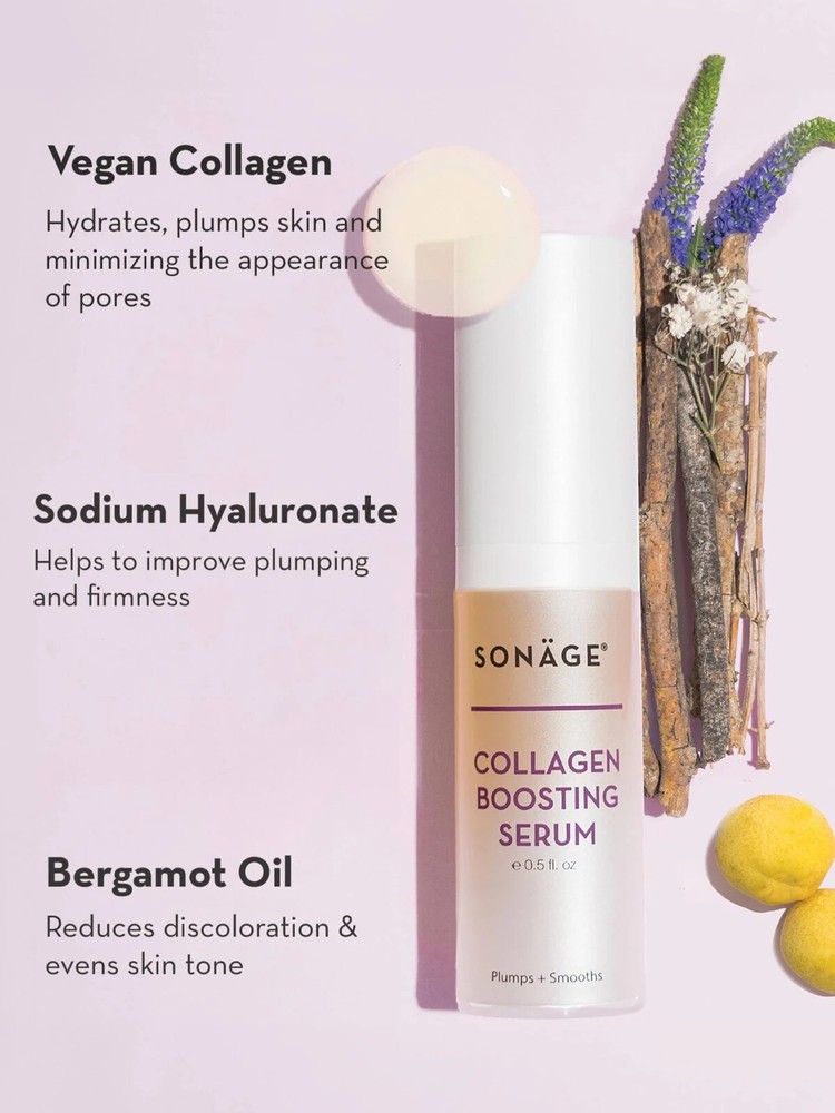 SONAGE Collagen Boosting Serum Plumps & Smooths 1 fl oz/30 ml Vegan $48 MSRP.