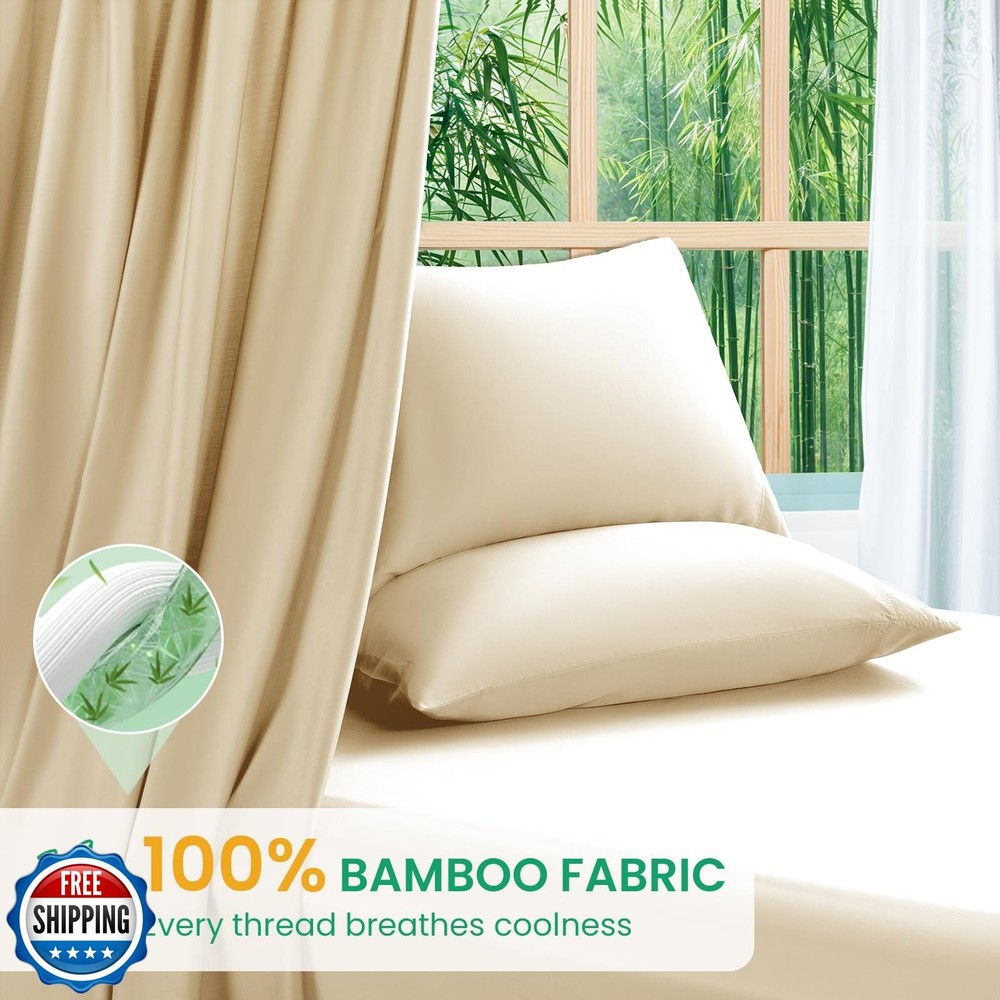SONORO KATE 100% Viscose Derived from Bamboo_Sheets King Size, Ultra Breathable and Cooling Bed Sheets for Hot Sleepers, Hotel Luxury Silky Bedding Sheets, 16" Deep Pocket - 4PC (Beige,King) Features UNMATCHED COMFORT & SOFTNESS: Crafted from 100% bamboo_derived rayon, our bed sheets deliver unparalleled softness with a silky-smooth, milk-like texture. OEKO-TEX certified and stronger than cotton, these sheets offer cloud-like comfort for a rejuvenating sleep. The sateen weave ensures a luxurious hotel-grade finish that resists pilling and fading. COOLING & THERMOREGULATING PERFORMANCE: Stay 3–4° cooler than cotton with moisture-wicking bamboo_fabric designed for hot sleepers. Naturally breathable and thermoregulating, these sheets keep you dry in summer and cozy in winter, ensuring a comfortable night’s sleep in every season. DEEP POCKET & SECURE FIT: The fitted sheet features a 16" deep pocket, while the elastic band around the edge guarantees a secure fit that won’t shift during sleep. The set includes 1 flat sheet (105"x102"), 1 fitted sheet (78"x80"), and 2 pillowcases (20"x40"), all tailored for a polished, wrinkle-free look on any bed. EASY CARE & LONG-LASTING DURABILITY: Machine wash in cold water, tumble dry on low, and say goodbye to ironing! Our sheets set is made from 100% viscose derived from bamboo_, ensure years of silky softness. Pet-friendly and stain-resistant, these sheets withstand daily wear while remaining vibrant and fresh. AFFORDABLE LUXURY & DURABILITY: Made from high-grade bamboo_derived viscose, these sheets boast a smooth, wrinkle-free surface and exceptional softness. Enjoy long-lasting quality and luxury without compromising durability. This set makes a thoughtful gift for Christmas, Thanksgiving, Teacher's Day, birthdays, or other special occasions—guaranteed to bring both joy and practicality to your loved ones. Shipping Free & Fast Shipping: We offer free shipping to most of the USA with a normal delivery time of 3-7 days. However, due to the current situation, additional delivery time (up to 3 weeks) may be required for some items. Alternative Carriers: We may use alternative carriers (e.g., USPS, FedEx, UPS) to ensure your package arrives safely and on time. Due to the use of multiple carriers, we are unable to provide a tracking number automatically. Handling Time: Orders are processed and shipped within 1-2 business days of receiving cleared payment. Shipping Restrictions: Shipping to Alaska, Hawaii, Puerto Rico, Guam, and other US territories may incur shipping charges or delivery restrictions. Please contact us before ordering, or your order can be refunded/cancelled. State Restrictions: Certain items may not be shipped to California due to state regulations. Contact for Tracking Updates: If you require tracking updates or have any concerns about the delivery of your order, please feel free to contact us, and we will be happy to assist you. Return Policy 30-Day Hassle-Free Returns: If you are not completely satisfied with your purchase, you can return the item for free within 30 days of receiving it for a full refund or exchange. Easy Return Process: Contact us, and we will provide you with a prepaid return shipping label and detailed instructions. No Restocking Fee: There are no restocking fees for returns. However, the buyer is responsible for return shipping costs if the return is not due to a seller"s error. Refund Processing: Refunds will be processed within 1 business day of receiving the returned item in its original condition. Feedback Your feedback is extremely important to us. We strive to provide the best products and customer service possible. If you are satisfied with your purchase, please take a moment to leave us a positive review. If you have any concerns or issues with your order, please contact us before leaving negative feedback. We are committed to resolving any problems and ensuring your satisfaction. Contact Us If you have any questions or concerns, please feel free to reach out to our customer support team. You can contact us through the eBay messaging system. We are available Monday to Friday, 9:00 am to 5:00 pm EST, and we will do our best to respond to your inquiry within 24 hours. Thank you for supporting our small family business!