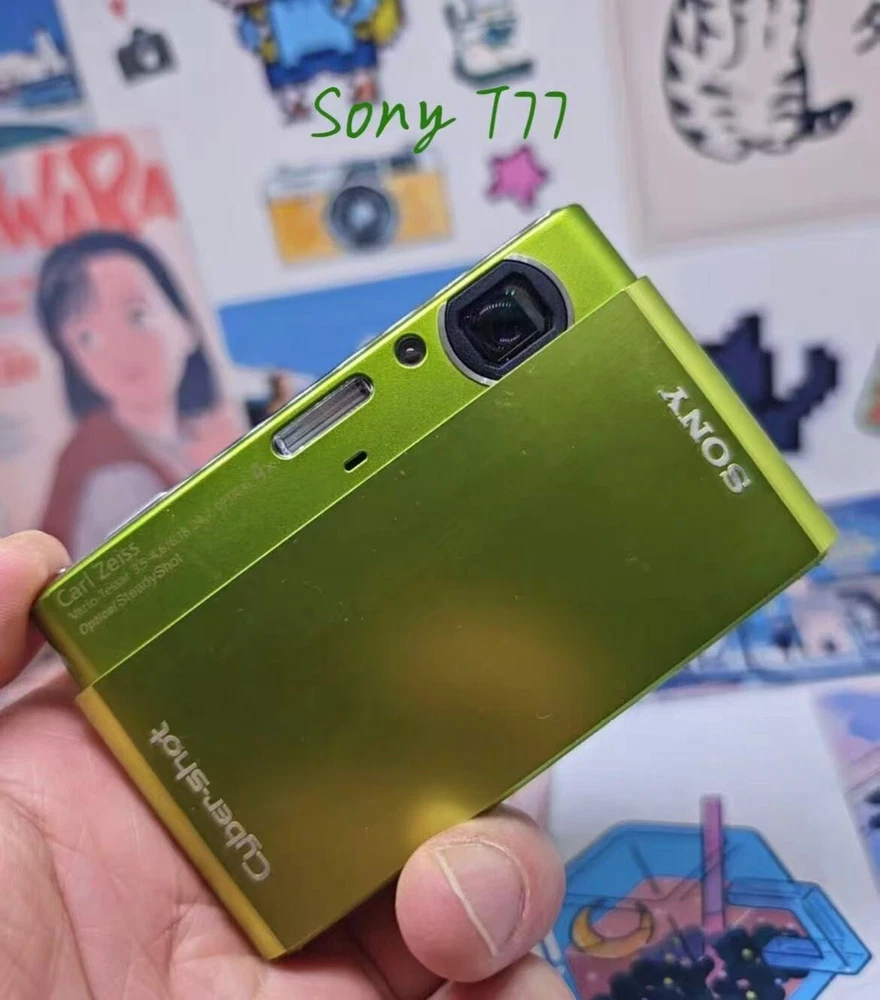 Series: Sony Cyber Shot Color: Green MPN: Dose not apply Battery Type: Lithium-Ion Optical Zoom: 4x Model: SONY DSC-T77 UPC: Dose not apply Seller Notes: “Fully tested,w/Battery& SD Card&Charger,English languege, works great,have some signs of use” Item Weight: 4.4 Oz. Digital Zoom: 2x Features: Histogram Display, Direct Print, DPOF Support, Auto Power Save, PictBridge Support, Built-in Help Guide, Built-in Speaker Type: Compact gtin13: Dose not apply Brand: Sony