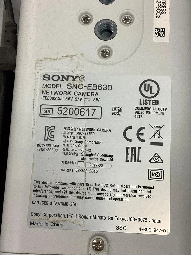 Brand: Sony Model: SNC-EB630 Type: Security Camera