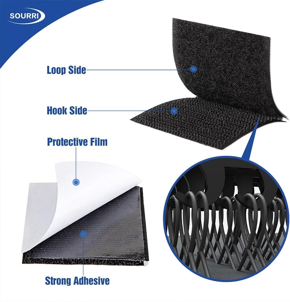 SOURRI 4'' x 20Ft Large Hook and Loop Sheet Tape Fastener, 20ft x 4in, Black Product Details Product Dimensions: 9.84 x 5.12 x 5.12 inches Item Weight: 13.4 ounces Manufacturer: SOURRI Item model number: hook and loop Brand: SOURRI Color: Black Size: 20ft x 4in Mounting Type: Adhesive 【Self Adhestive Hook and Loop Sheet】Rolls:1 roll of 20 feet hook tape,1 roll of 20 feet loop tape. The plastic cable tie is made of soft Nylon, and the hook and loop Strips fastener is a safe and environmentally friendly alternative,so it will not damage the goods or any items tied together. 【Widely Use】The hook and loop self adhesive strips with sticky back can be applied on any smooth surfaces of walls, plastics, wood, glasses, etc.The adhesive double sided works great in any area such as home, office, tents, school, car,etc. It is an ideal hook and loop adhesive tape sheet make your life easier. 【Strong Adhesive Backing】SOURRI SELF-ADHESIVE HOOK LOOP SHEET double sided strips coated with high quality waterproof glue, sticky well, longer lasting. Adhesive hook and loop tape fastener provide powerful clamping force for heavy-duty applications.. If you need to sew, you just sewing the corners is fine because the adhesive is really strong. 【Super Adhesion Hook Loop Tape】These hook and loop adhesive tape fastener makes the ultimate organization tool for mounting, hanging, storing, or securing items indoors or outdoors, and can be adhered to most surface in houses and garages. 【Easy to Install】Clean the smooth surface, Simple peel off and stick on, No hammer, drilling, nails. Hook and Loop Tape double sided feature an easy peel and stick application, it’s the simple solution to organize on many surfaces without putting holes in the wall.