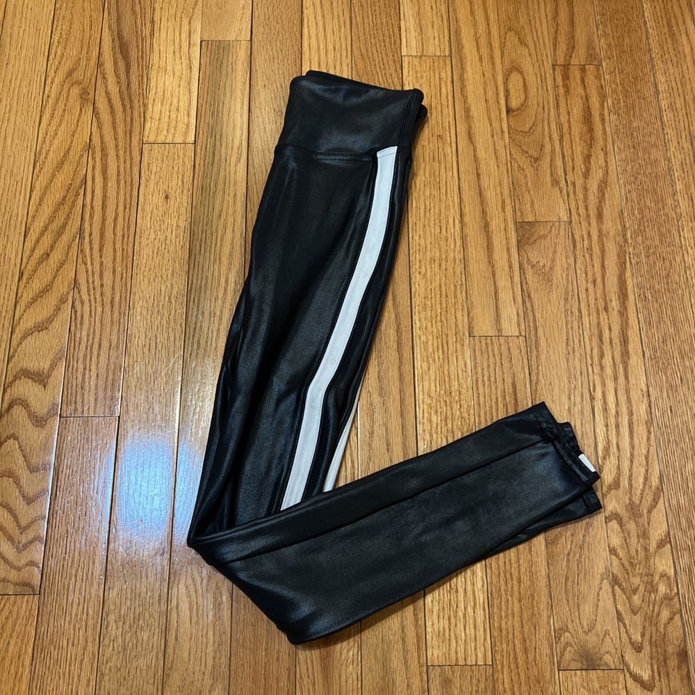 CONDITION: Leggings are pre-owned in good condition. Some fading from wash on white side strips but not very noticeable. MEASUREMENTS Waist: 29” Rise: 8” Inseam: 28”