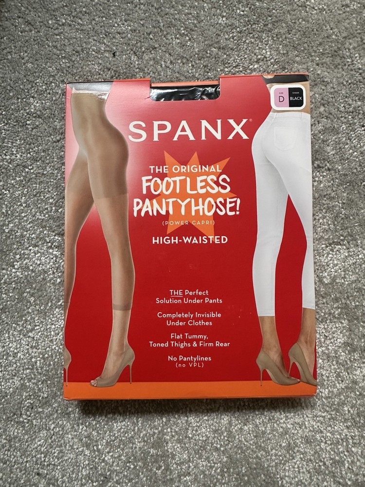 The SPANX High-Waisted Footless Pantyhoose in Black, Size D, is a stylish and comfortable shapewear piece designed for women. Made from nylon material, these non-wired panties provide compression in the waist area for a smooth and sleek silhouette. The high-waisted style and footless design make them a versatile and practical choice for everyday wear. The black colour and opaque material ensure a classic and discreet look, while the trusted Spanx brand guarantees quality and reliability. Perfect for achieving a flattering figure under any outfit, these pantyhoose are a must-have in any woman's wardrobe.