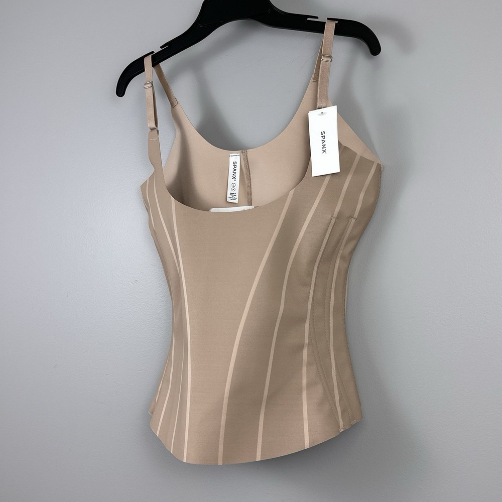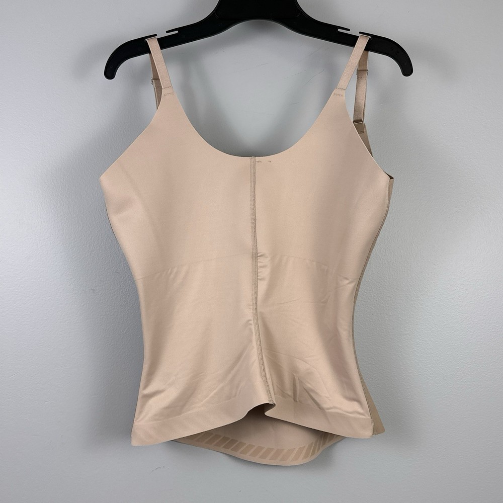 Listed is a SPANXsupersculpt TotalContour Stay Down Open-Bust Cami in Natural Bronze, size large. New with tags. Lying flat without stretching, waist across 13". About 15.5" across underarm to underarm. Cinched & Snatched: Built-in flexible boning comfortably contours your curves for a sculpted silhouette LYCRA FitSense Technology: Strategically printed for targeted waist shaping, tummy control, and thigh smoothing Open-Bust Design: Wear with your favorite bra for optimal lift and a natural shape Adjustable Straps: Customize your fit without pinching or digging Breathable & Quick-Dry: Stay cool and comfortable all night long Free-Cut Hems: Seamless edges for all-day comfort and invisibility under clothes. Inner gel edge at bottom helps stay down. Long-Lasting Wear: Engineered for durability and daily confidence Shipping costs are calculated to reflect shipping service rates based on weight and distance traveling. Thank you for looking!