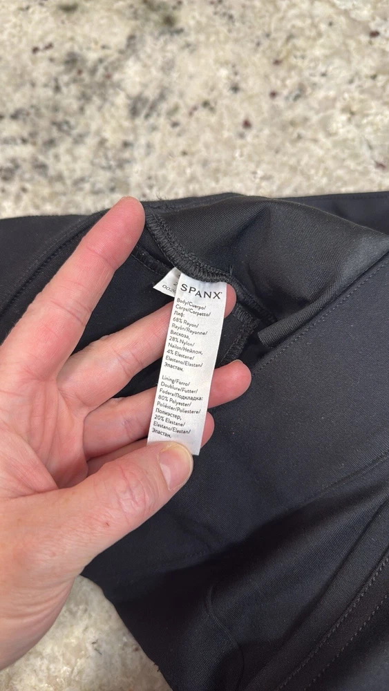 SPANX The Perfect Pant Ankle Back Seam Skinny Black Pants Size Small Retail $148 Size small EUC 13.5” across the waistband 36” long 26” inseam 10” rise The Perfect Pant in Ankle Back Seam Skinny is your new go-to for any outfit or occasion. Thanks to—seriously, magical—smoothing ponte fabric and a comfortable, pull-on design, the Ankle Back Seam Skinny offers a sleek look, a great butt and features a skinny-leg cut, making for a style so flattering, you'll wear them again and again! Best. Pants. EVER. Pull-on design for a completely smooth front4-way stretch, premium ponte fabricHidden tummy shaping Machine-washable for easy care Body: 68% Rayon, 28% Nylon, 4% Elastane. Lining: 80% Polyester, 20% Elastane.Machine Wash Cold, Gentle Cycle. Only Non-Chlorine Bleach When Needed. Line Dry. Low Iron If Needed Style 20251r Retail $148