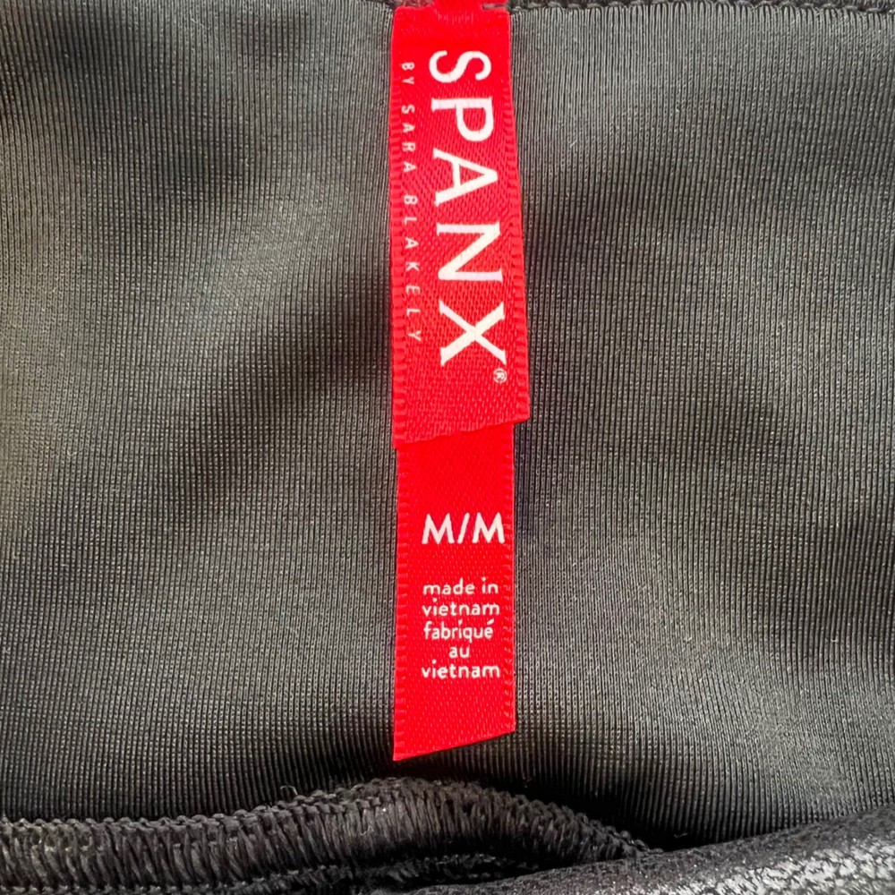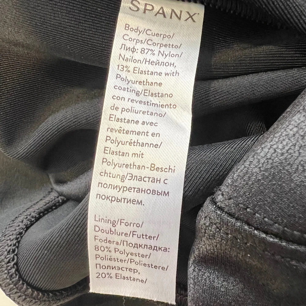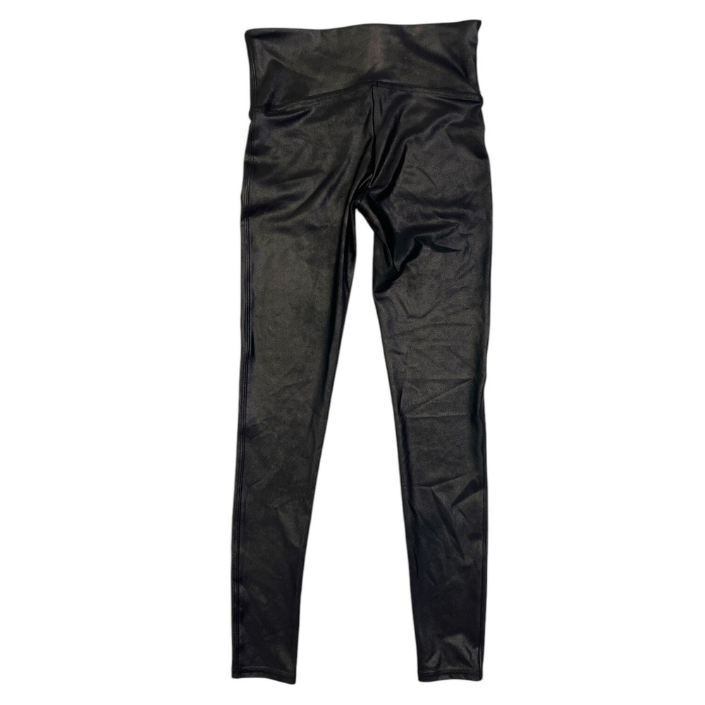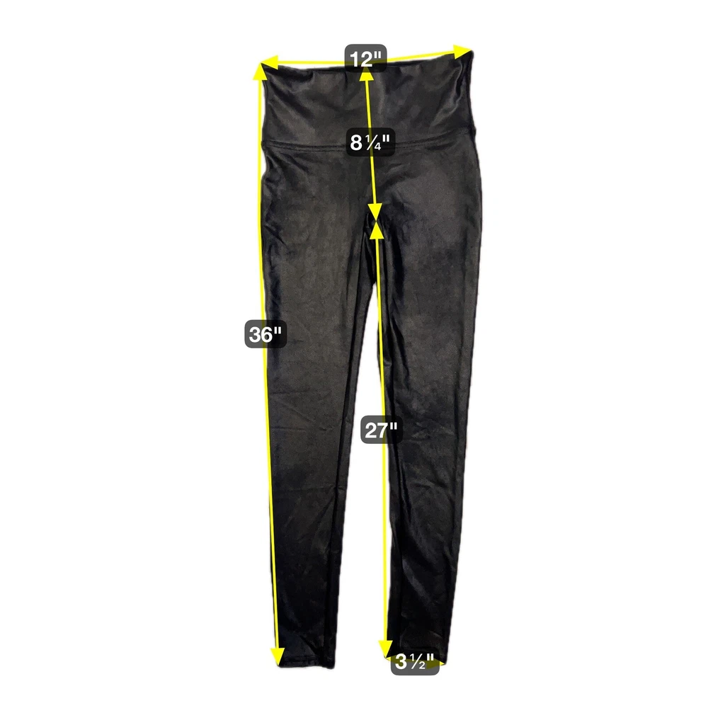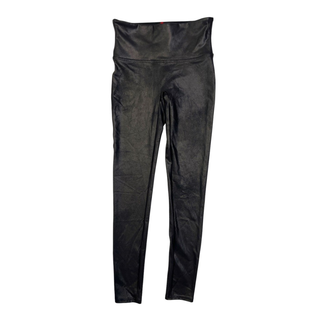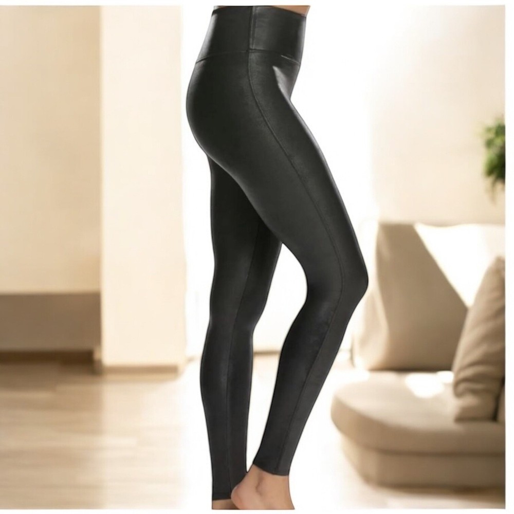 SPANX | Shape Vegan Faux Leather Shaping Leggings Size Medium Goth Moto Biker Edgy yet flattering, these SPANX Shape Faux Leather Leggings in Size Medium combine moto and biker vibes with tummy control shaping. Perfect for concerts, date nights, or nights out, they elevate any goth or streetwear look. Wear with boots and a crop jacket for instant attitude. The coating on the fabric creates the signature faux leather finish, offering a stylish, edgy look with a slight sheen. The material is lightweight yet durable, making these leggings both fashionable and functional. Approximate Measurements Waist Width: 12.0 in. Inseam Length: 27.0 in. Outseam Length: 36.0 in. Hip Width: 13.25 in. Front Rise Length: 8.25 in. Back Rise: 12.0 in. Vegan leather faux leather SPANX leggings biker style moto fashion shaping leggings goth aesthetic high waist edgy style