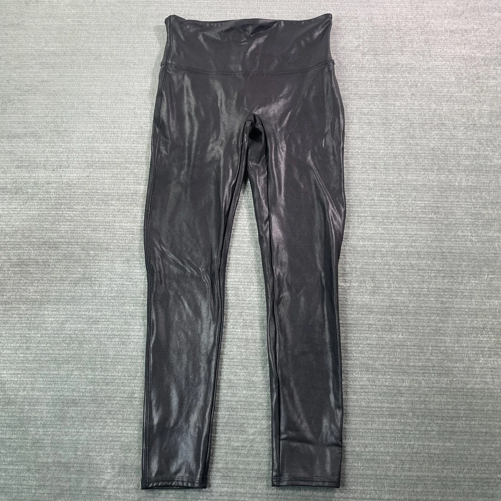 SPANX Leggings Womens L Black High Rise Faux Leather Shapewear Shiny Rock Overall good used condition. No Flaws.