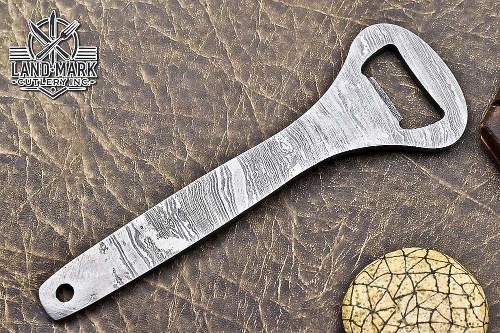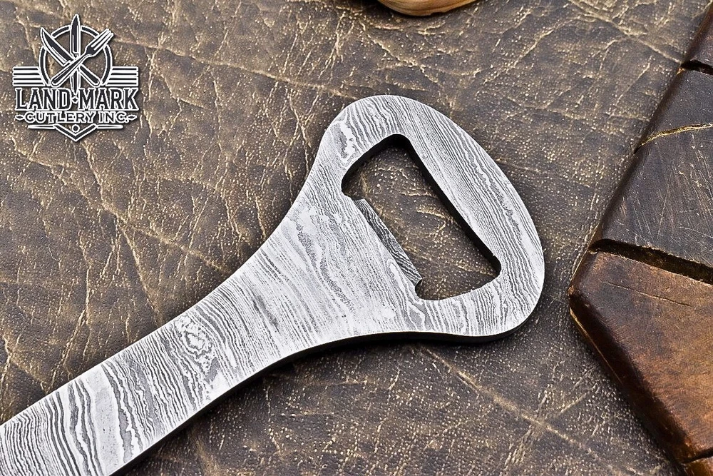 Custom Hand Made DAMASCUS STEEL BOTTEL OPNER We offer a shipping discount for More then one purchased . And discount will be apply on combine invoice, Discount will not apply on separate payment. ITEM DETAILS OVER ALL LENGTH 5.5 inches long (Approx) BLADE HARDNESS 58-60 HRC Which Holds The Sharp Edge For Long Time. HANDLE DAMASCUS COVER NO This Awesome custom made KNIFE has a nice hand forged with the combination of 4340 & 1080 steel. HOW OUR DAMASCUS IS MADE: All our Damascus is real and not just an acid etch. Damascus is a mixture of 1080HC and 4340 nickel carbon. You heat them up together and then fold the bar over and over to get the desired layers, ours are 396 layers. Then you burn the blade in acid, and it turns the nickel satin color and the high carbon turns blackish gray. This is how the layers are exposed to show the layers of the new steel created coined "Damascus". All Damascus is acid etched to show the layers. If you high polish the metal it will be shinny satin like all steels. Only after you burn the sides of the blade with acid do you see the layers of the two steels. Makes sense? After we make our knives we high polish the handles and put an edge on the blade. The high polishing buffs off the acid burned layer of the handle, and the blade edge is sharpened and the acid burned edge becomes satin. You can re-burn the tang of the blade near the handles and the edge of the blade and it will show the layers once more. All our knives are hand made, durable and unique ***** YOU WILL RECEIVED THE SAME KNIFE Qality Standards Our Damascus blades are made from high quality non-stainless steels which rival or exceed any Damascus blade made from the 10 series with 4340. Our Damascus combination has taken years to perfect and has been tested under a variety of application which will offer professional performance in categories of toughness, strength (lateral stress) and edge honing and holding ability. In a 5 spot Rockwell test our blades will average near or close to 58 which offers a perfect balances between its toughness and strength.Our blades due to carbon content need to be regularly treated with wax and/or 3 in 1 oil to maintain its superior quality. Questions if you have any question feel free to send us message we aim to answer all questions within 24 hours Feedback If you are not satisfied with our service please contact us before leaving any negative or natural feedback. We will resolve all issues as quickly as possible. Disclaimer We are not responsible for any injuries associated with the use of our tools. Our products are intended for legal use only by responsible buyers. Therefore, we will not sell our products to anyone under the age of 18. Before bidding please check your country laws as some countries Custom don't allow this. If your purchase is held by Custom Authorities in your country/State we will not be responsible for that and no refund will be issued Shipping We offer a 20% shipping discount for More then one purchased . And discount will be apply on combine invoice, Discount will not apply on separate payment We ship within 24 hours after receiving complete payment but this can be delayed due to week ends or Governments and Religious Festivals . . This is beyond our control and we apologize for this inconvenience. Precautions Our Tools are very sharp so open and use them very carefully We are not responsible for any injuries associated with the use of our tools Tips to Care knife 1. NEVER STORE YOUR KNIFE FOR LONG TIME IN LEATHER SHEATH. 2. LEATHER CAN ABSORB WATER, WHICH WILL RUST THE KNIFE. 3. ALWAYS CLEAN THE BLADE AFTER USING WITH OIL OR WAX