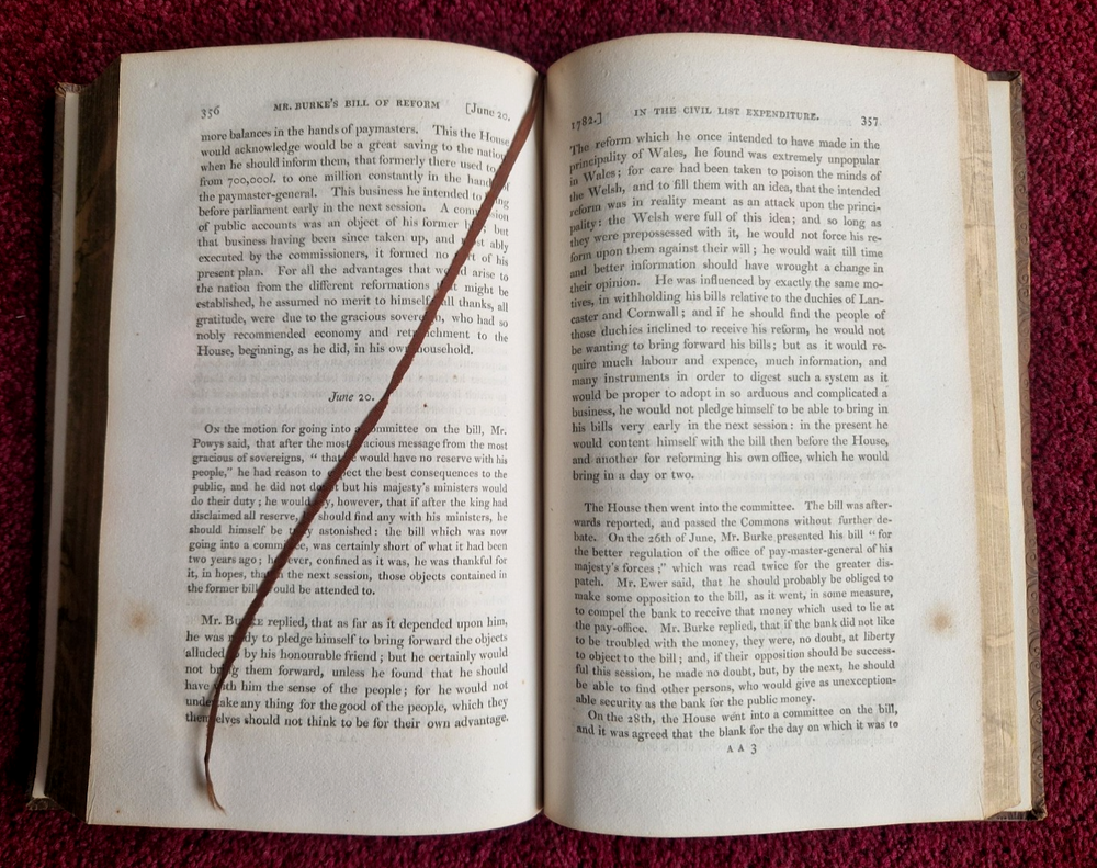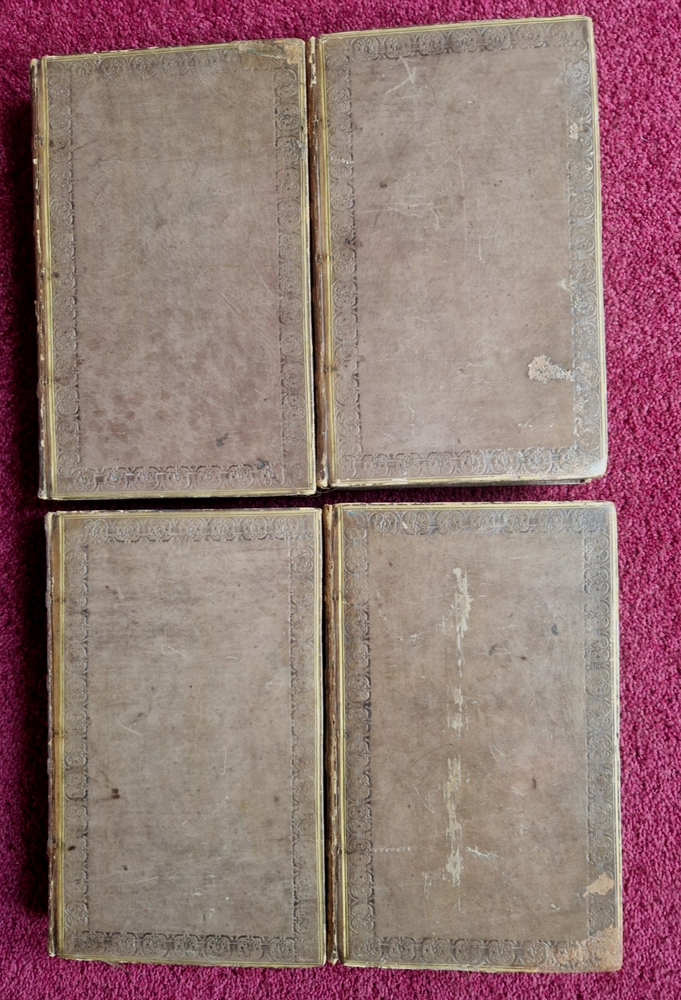 Edmund Burke was born in Ireland. He was an Orator, Philosopher and Politician. He entered Parliament in 1765 in the government of William Pitt the younger and served until 1794. He is known for his opposition to the French Revolution and to the slave trade, support for American Independence, criticism of the East India Company and a failed attempt to impeach the, then, Governor of Bengal. This 4 volume collection is Leather bound with tooled decoration and marbled edges. They are complete and well bound with no loose pages. There is a tape bookmark in each. There are some pencil marks and water marks on a few pages and volume IV has the name Walter Boldero 1892 inscribed inside front (I am wondering if this may have been Walter Boldero Paton?), vol I has R. Jones. There are some scuff marks on the leather but on the whole these books are in much better condition than others I have seen at a similar price. They are from my late father's collection. Reasonable offers will be considered. Total weight - 2.8kg without packing