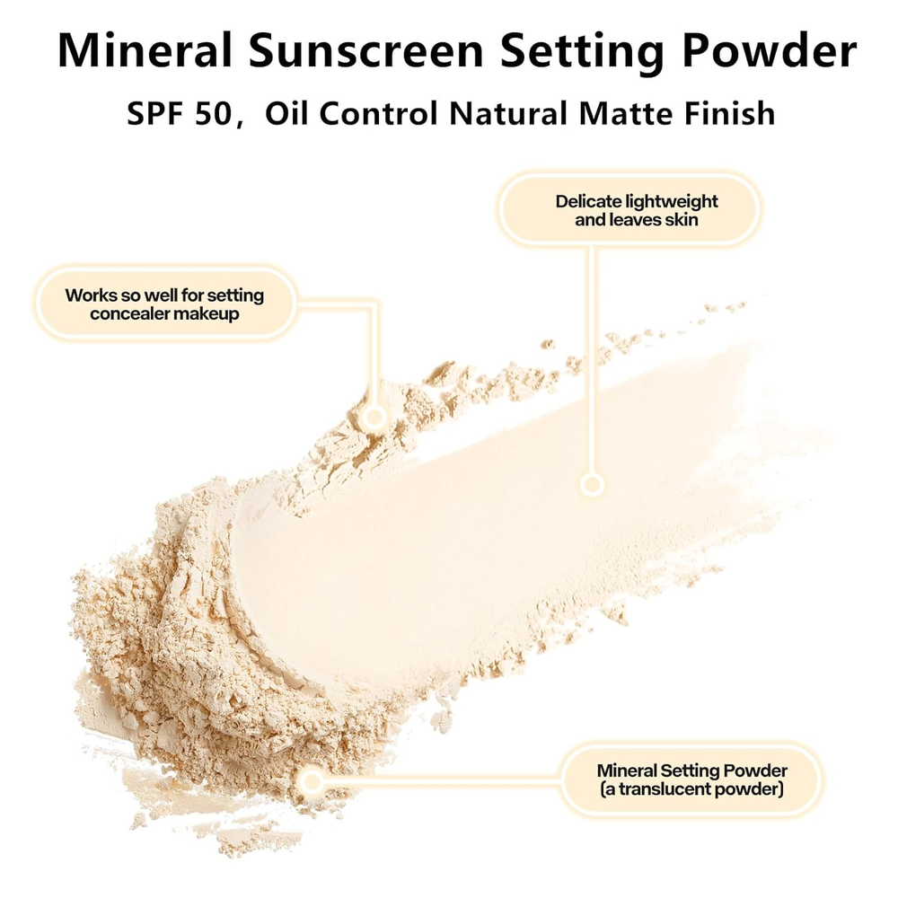 Mineral Sunscreen Spray Setting Powder,Spf 50,Translucent,Natural Loose Matte Mineral Sunscreen Powder Spray Face Makeup,For All Skin Tones,Hair and Scalp 【Mineral Sunscreen Setting Powder Spray SPF 50 PA++】Our Go Ho mineral sunscreen powder with SPF 50 shields your scalp and part line from UV damage. Weightless, translucent formula blends invisibly—no greasy residue or white cast.Spray 1-2 inches from your face or scalp as the final step in your routine. Blend effortlessly with a brush—no tools needed. Perfect for on-the-go touch-ups. 【Mineral Sunscreen Formula for All Skin Types】Gentle, translucent mineral sunscreen powder suits sensitive and all skin types. Fragrance-free, non-irritating, and blends seamlessly without leaving streaks or cakiness. Spray onto roots, part lines, or hairlines for seamless, natural sun protection. 【Translucent,Face,Scalp&Hair Powder Sunscreen】Free from oxybenzone and octinoxate, our Mineral Sunscreen formula nourishes the scalp while providing safe, non-irritating sun defense. Ideal for sensitive skin and daily use. 【Lightweight, Breathable Finish】Ultra-fine, buildable powder feels weightless and resists clumping. Enhances makeup texture with a natural matte look that never feels greasy or heavy. 【All-Day Oil Control Sunscreen Powder】Oil-absorbing marine minerals mattify shine and balance moisture for up to 12 hours. Perfect for touch-ups to refresh makeup or control summer sweat.Compact, spill-proof packaging fits in any bag. Use it setting makeup easily at the beach, or outdoors. Product Description Go Ho Sunscreen Setting Powder Spray Talc-free,Translucent,Hypoallergenic Oil Control All-Day Sun Protection & Matte Perfection.Achieve a shine-free, natural matte finish with our SPF-infused mineral sunscreen powder. Designed for all skin types, this weightless formula controls excess oil and minimizes pores while providing broad-spectrum UV protection. EFFICACY:The powder is delicate and light, the upper face naturally brighens the skin color carefully conceals pores and shine, comes with sun protection, SPF50 carefully blocks UVA and UVB, resists ultraviolet rays, and long-lasting makeup, presents a clear and translucent soft fog makeup, and easily creates makeup holding mist muscle. Use Directions: 1. Use a moisturiser under makeup for skin prep to keep extra safe. 2. After applying makeup, brush setting powder generously over your face to set makeup look. 3. Continue to use throughout the day to reduce shine and refresh your protection. Dimensions 3.5 inches x 12.83 inches x 1.06 inches. Weight: 1.13 oz Specifications Number of Items 1 Sun Protection Factor 50 Sun Protection Factor (SPF) Country of Origin China Product Benefits Make Up Mineral Sunscreen Spray Setting Powder Easy to Carry and Use Skin Type All Scent no Package Dimensions 12.83 x 3.5 x 1.06 inches; 1.13 ounces Shipping: Shipped from the USA. Fast delivery within 2–3 days. Payment: PayPal, credit card, bank transfer. Returns: 30-day free return – we cover the shipping cost. Quality: Made in Europe/USA/China. No customs fees. VAT invoice on request. Feedback: You’ll automatically receive positive feedback after payment.