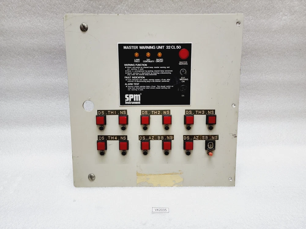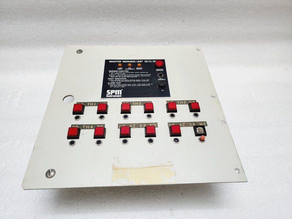 We are pleased to offer SPM INSTRUMENT 32CL50 MASTER WARNING UNIT 220V Product Detail: SPM INSTRUMENT 32CL50 MASTER WARNING UNIT 220V MODEL: 32 CL 50 TYPE: MASTER WARNING UNIT Shipment processing time: All orders are processed within 1-2 business days. Orders are not shipped or delivered on weekends or holidays. Shipment confirmation & Order tracking: You will receive a Shipment Confirmation email once your order has shipped containing your tracking number(s). The tracking number will be active within 24 hours. Customs, Duties and Taxes: We are not responsible for any customs and taxes applied to your order. All fees imposed during or after shipping are the responsibility of the customer (tariffs, taxes, etc.). Damages: In case of damage or lost of shipment during transit, We will investigate the matter and provide the satisfactory resolution. Returns Policy: We offer return or exchange of ordered item up to 30 days of receipt of goods in subject to certain condition. In case of damaged goods we shall offer the replacement or refund for the ordered item. If you require any more details, request you to send us the direct message through eBay for early resolution. Thanks