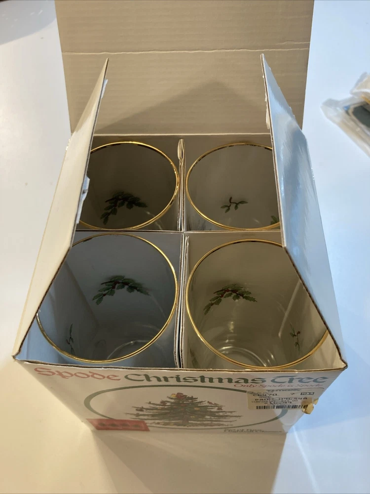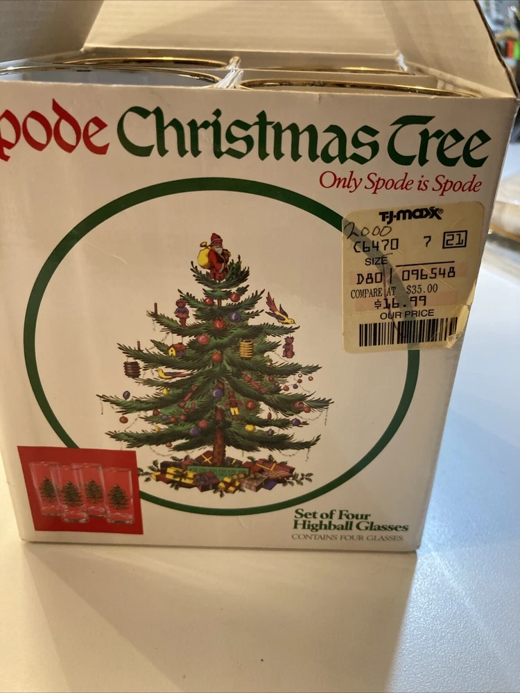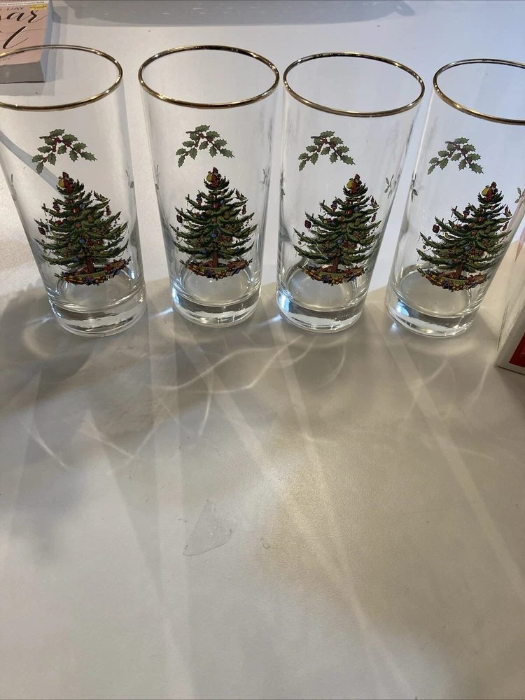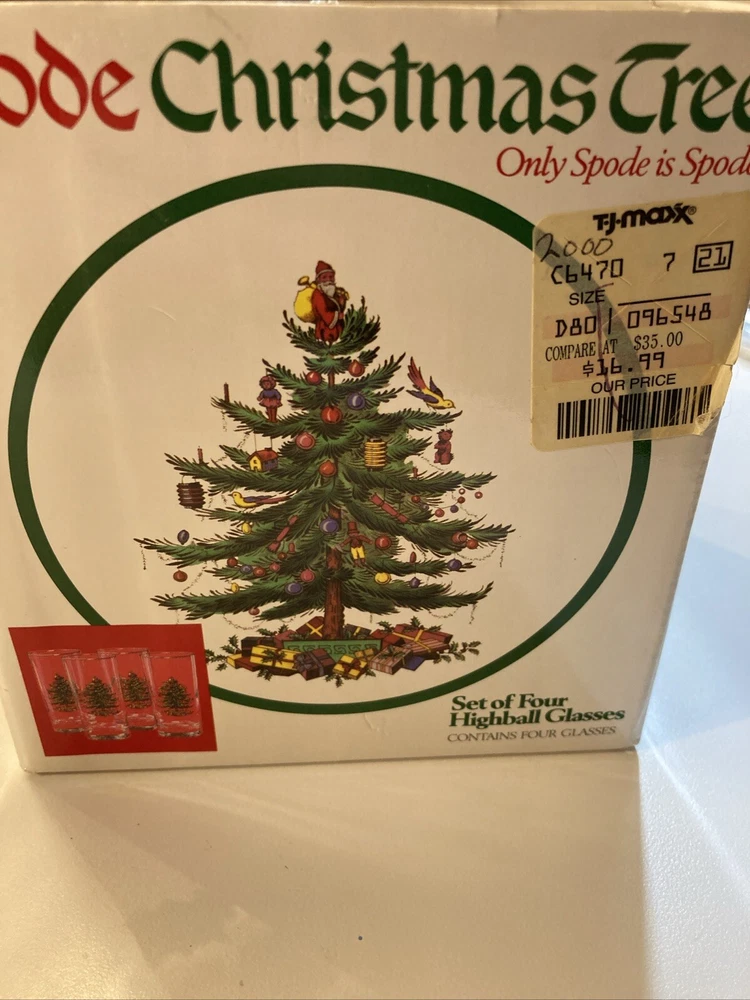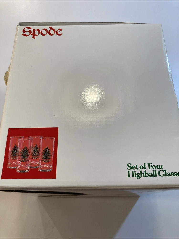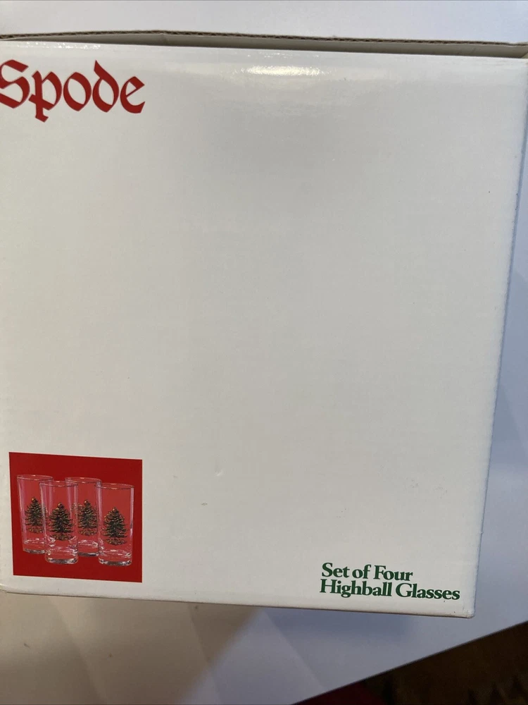 Signed:NoType:Highball GlassShape:CylindricalMaterial:GlassOriginal/Licensed Reproduction:OriginalProduct Line:ChristmasNumber of Items in Set:Four-PieceColor:MulticolorItem Height:5½"Brand:SpodeTime Period Manufactured:1990-1999Pattern:Christmas TreeHandmade:NoOccasion:Christmas