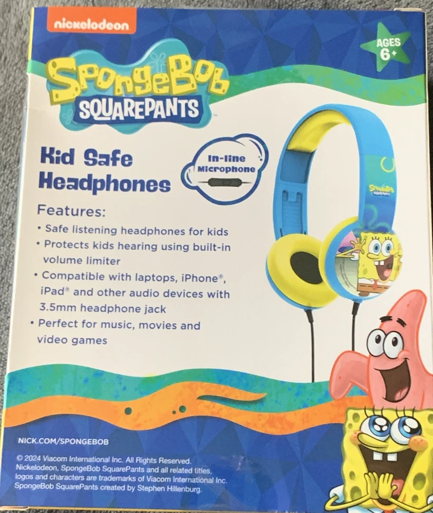 Connectivity:3.5mm JackCable Length:4ftModel:SPONGEBOBImpedance:32 ohmFeatures:Volume LimitationNumber of Earpieces:DoubleType:Ear-Cup (Over the Ear)Form Factor:HeadbandPersonalize:NoMicrophone Type:NoneCountry/Region of Manufacture:ChinaYear Manufactured:2020sBrand:NickelodeonColor:MulticolorMPN:HP-0072-SPONGEBOB