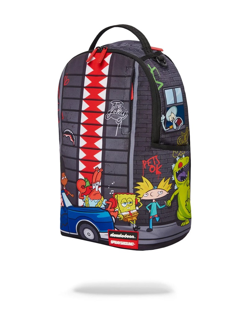 This Sprayground 90s Nick Vertical Shark backpack is a large-sized, multicolor backpack designed for unisex kids. It features a zip closure, a 90s theme, and is made of faux leather and polyester material. The backpack has a depth of 6 inches and showcases a unique and stylish design inspired by the 90s era. DLXR = 100% RECYCLED POLYESTER FABRIC PRODUCT DETAILS Exterior Dimensions: 18" x 6" x 11.5" ∙ Front zipper pocket ∙ Side pockets ∙ Zippered Stash pocket ∙ Ergonomic mesh back padding ∙ Adjustable Straps for custom sizing ∙ Nylon Zippers with Metal Hardware ∙ Metal "Sprayground Authentic" badge ∙ Slide through back sleeve connects to Carry on luggage to free your hands Interior Separate Laptop compartment ∙ Separate Velour sunglass compartment ∙ Mesh organizer pocket Fabric Durable 900D Poly water-resistant fabric 100% RECYCLABLE MATERIAL