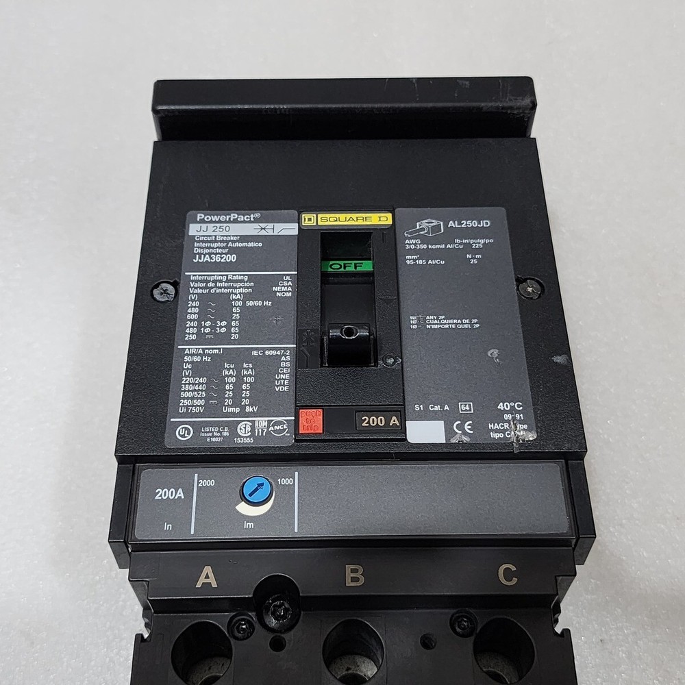 We are pleased to offer SQUARE D JJA36200 CIRCUIT BREAKER 200A JJ250 WITHOUT JAWS & PROTECTOR Product Detail: SQUARE D JJA36200 CIRCUIT BREAKER 200A JJ250 WITHOUT JAWS & PROTECTOR PART NO: JJA36200 TYPE: CIRCUIT BREAKER 200A Shipment processing time: All orders are processed within 1-2 business days. Orders are not shipped or delivered on weekends or holidays. Shipment confirmation & Order tracking: You will receive a Shipment Confirmation email once your order has shipped containing your tracking number(s). The tracking number will be active within 24 hours. Customs, Duties and Taxes: We are not responsible for any customs and taxes applied to your order. All fees imposed during or after shipping are the responsibility of the customer (tariffs, taxes, etc.). Damages: In case of damage or lost of shipment during transit, We will investigate the matter and provide the satisfactory resolution. Returns Policy: We offer return or exchange of ordered item up to 30 days of receipt of goods in subject to certain condition. In case of damaged goods we shall offer the replacement or refund for the ordered item. If you require any more details, request you to send us the direct message through eBay for early resolution. Thanks