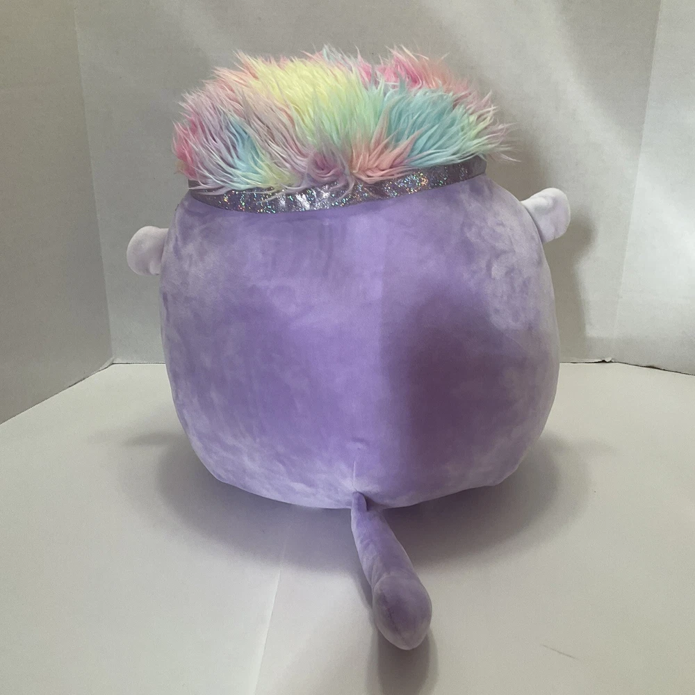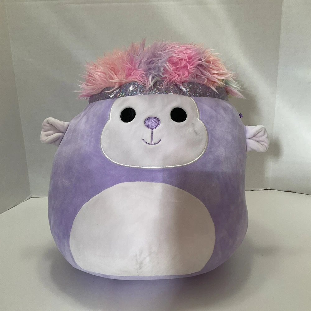 Meet Tazik the Purple Monkey, the newest addition to the SQUISHMALLOWS collection from Kellytoy. This adorable plush toy stands at 16 inches tall and features a colorful rainbow headband that adds a touch of whimsy to its cute appearance. Tazik is made of high-quality materials that make it both soft and durable, making it perfect for kids and collectors alike. This medium-sized SQUISHMALLOWS plush toy is sure to bring joy to anyone who adds it to their collection. It is also washable, making it easy to keep clean and maintain. Whether you're a fan of monkeys, purple creatures, or just love collecting stuffed animals, Tazik is a must-have for your collection. No tag but in great condition.