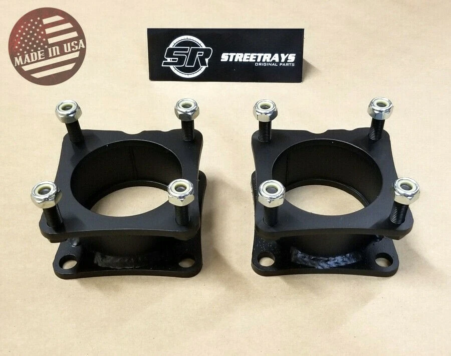 StreetRays [Originals] Steel Front 2" Lift Kit for 2001-2012 Escape & Tribute & Mariner 2WD / 4WD All StreetRays [originals] parts are CNC cut right here in Central Texas! Where precision & Quality Finish is the main focus. We also source our hardware from within USA and we always make sure the hardware grade is comparable to OE grade. Our lift spacer/brackets are CNC cut from 1/4" USA carbon steel, If you compare the thickness of our plates, you will find that ours are significantly stronger than the rest. StreetRays lift kit will give you 2.0" more ground clearance as well as ability to fit larger wheel & tires for that awesome look. We also include short installation guide that will ensure an smooth install process for our users. Our lift spacer kit will not affect your factory OEM ride quality or comfort level. IMPORTANT NOTE: Lift amount does NOT equal spacer thickness. Strut spacers use compound ratios to provide lift amount. Example: A 2" lift kit spacer will be roughly 1.25" thick, depending on the application. Applications: Ford Escape 01-12 2WD 4WD Mazda Tribute 01-11 2WD 4WD Mercury Mariner 05-11 2WD 4WD