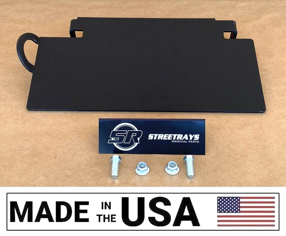 StreetRays [Originals] Swivel Chute Blocker Plate FOR Exmark Radius E/S Series 48" 52" 60" Zero Turn Mower Part # SRX_Radius_E_S_4860_ChuteBlock All StreetRays [originals] parts are CNC cut right here in Central Texas, USA. Where precision & Quality finish is the main focus. Our parts are all Laser cut & CNC formed on our Amada press brake for reliable fit. This mulch plate is fabricated from 3/16" USA steel sheet. Our Swivel (open / close) Chute Blocker Plate fits all Exmark Radius E/S series mowers (NOTE the deck size) with UltraCut series 3 deck sizes 48",52" and 60" typically years 2017-present. The installation is really easy. Simply unbolt the factory chute by undoing just a few bolts and attach our chute blocker plate with the provided nylon locking hardware and you're done! Please note that you should NOT tighten the nuts all the way tight because the nylon locking nuts will ensure they stay in place, you need the nut to be loose because that's how the chute blocker can open and close without interference. Now you have mulch machine! or rather, you have a zero turn mower than won't throw rocks or any hazard randomly at your house / car / window / etc. This is essential when you're working on long overdue / heavily grassed / weeded areas.